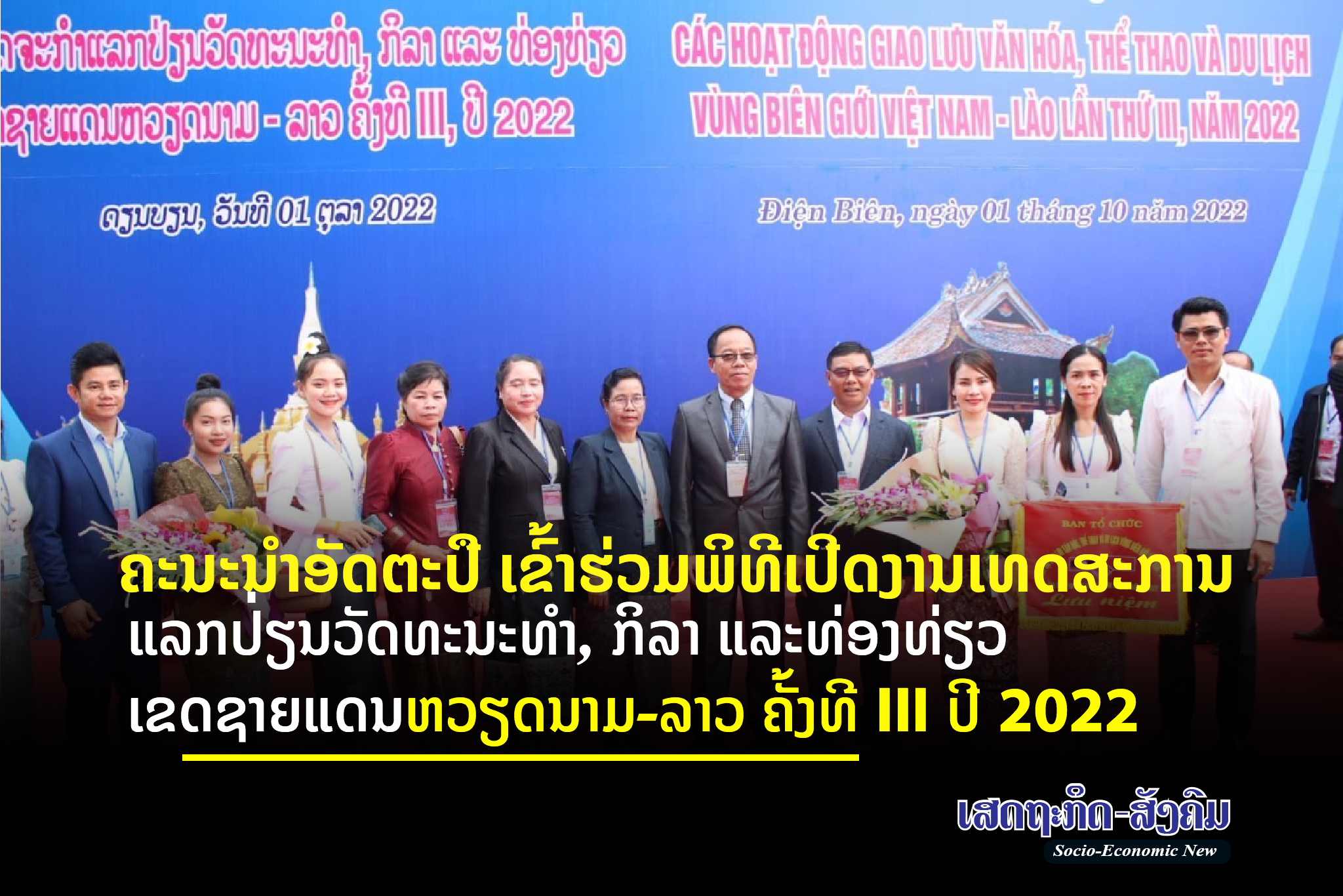 ໃນວັນທີ 1 ກັນຍາທີ່ຜ່ານມາ ຄະນະນຳແຂວງອັດຕະປື ນຳໂດຍ ທ່ານ ນ. ບຸນນານ ບຸນນະແສງ ຄະນະປະຈຳພັກແຂວງ, ຫົວໜ້າຄະນະໂຄສະນາອົບຮົມແຂວງ ພ້ອມຄະນະ ໄດ້ເຂົ້າຮ່ວມພິທີເປີດງານກິດຈະກຳແລກປ່ຽນວັດທະນະທຳ, ກິລາ ແລະ ທ່ອງທ່ຽວ ເຂດຊາຍແດນ ຫວຽດນາມ-ລາວ ຄັ້ງທີ III ປີ 2022.