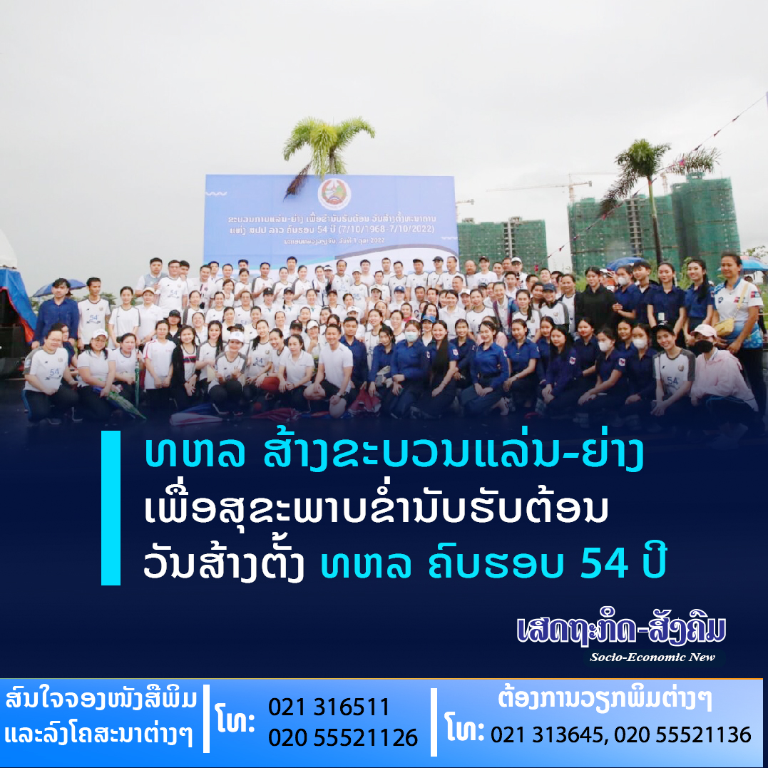 ວັນທີ 1 ຕຸລາ 2022 ທີ່ ເຂດເສດຖະກິດພິເສດບຶງທາດຫຼວງ ທະນາຄານແຫ່ງ ປປ ລາວ (ທຫລ) ພ້ອມດ້ວຍທະນາຄານທຸລະກິດທີ່ດຳເນີນທຸລະກິດຢູ່ ສປປ ລາວ ໄດ້ຮ່ວມກັນຈັດຂະບວນກິລາແລ່ນມິນິມາລາທອນ-ຍ່າງ ເພື່ອສຸຂະພາບ