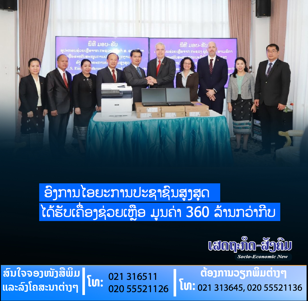 ໃນວັນທີ 30 ກັນຍາຜ່ານມາ, ໄດ້ມີພິທີມອບ-ຮັບເຄື່ອງຊ່ວຍເຫລືອປະກອບມີຄອມພິວເຕີໂນດບຸກ 30 ເຄື່ອງ, ເຄື່ອງປິ້ນເອກະສານ 1 ເຄື່ອງ ລວມມູນຄ່າທັງໝົດ 360 ລ້ານກວ່າກີບ ຈາກສະຖານເອກອັກຄະລັດຖະທູດ ສະຫະລັດອາເມລິກາ ປະຈຳ ສປປ ລາວ,