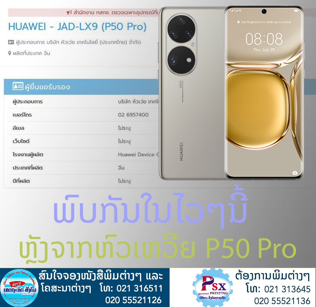 ຜ່ານການຮັບຮອງໃນໄທແລ້ວ ໃນທີ່ສຸດສະມາດໂຟນເຮືອທຸງແຖວໜ້າຂອງໂລກຄື Huawei P50 Series ກໍ່ພ້ອມເປີດໂຕ ແລະ ວາງຈຳໜ່າຍຢ່າງເປັນທາງ ການໃນປະເທດໄທແລ້ວ.