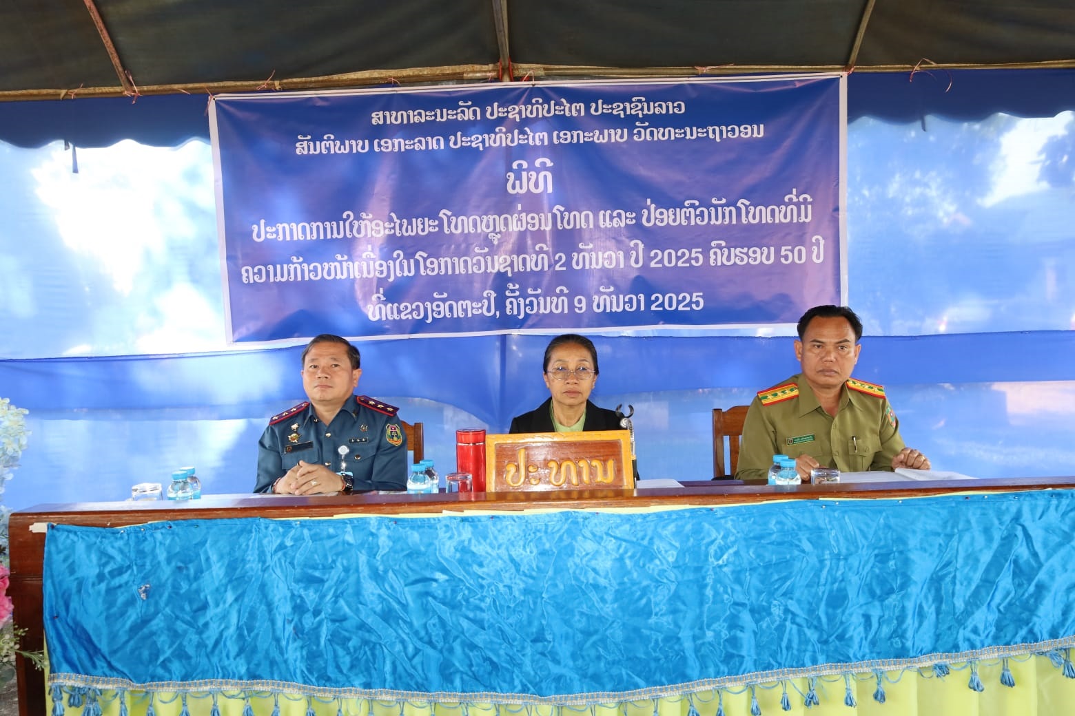 ແຂວງອັດຕະປື ປະກາດອະໄພຍະໂທດ ໃຫ້ແກ່ນັກໂທດທີ່ມີຄວາມກ້າວໜ້າ 68 ຄົນ