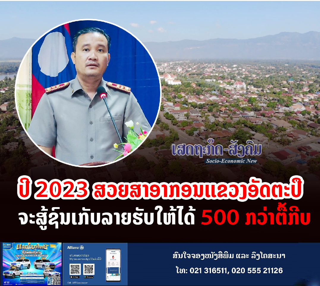 ອີງຕາມການລາຍງານຈາກທ່ານ ສຸລິພອນ ຟອງສະໝຸດ ຮອງຫົວໜ້າສວຍສາອາກອນ ປະຈໍາແຂວງອັດຕະປື ຕໍ່ກອງປະຊຸມສະຫຼຸບວຽກງານສວຍສາອາກອນທີ່ຫາກໍ່ສໍາເລັດຫວ່າງບໍ່ດົນຜ່ານມາແລ້ວນີວ່າ: ໃນປີ 2023 ນີ້ແມ່ນເປັນປີທີສາມຂອງການປະຕິບັດແຜນພັດທະນາເສດຖະກິດ-ສັງຄົມ 5 ປີ, ຄັ້ງທີ 9