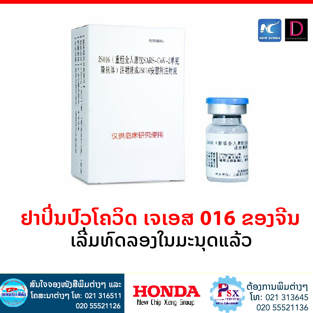ຢາຕ້ານໄວຣັດສຳລັບປິ່ນປົວຄົນເຈັບທີ່ຕິດເຊື້ອໂຄວິດ-19 ເຈເອສ 016 ຂອງສປ ຈີນ ເລີ່ມເຂົ້າສູ່ການທົດລອງທາງຄລິນິກໄລຍະທີ່ 3 ໃນຕ່າງປະເທດແລ້ວ.