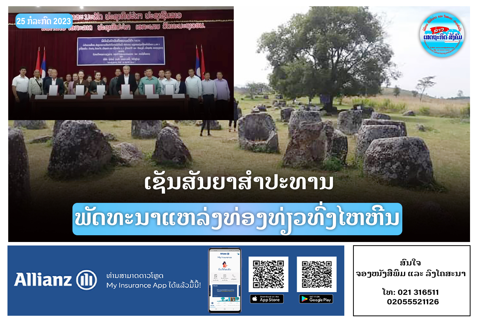 ແຫລ່ງຂ່າວຈາກ ແຂວງຊຽງຂວາງ ໃຫ້ຮູ້ວ່າ: ເມື່ອບໍ່ດົນມານີ້, ແຂວງຊຽງຂວາງ ຈັດພິທີເຊັນບົດບັນທຶກຄວາມເຂົ້າໃຈ (MOU) ວ່າດ້ວຍການສຶກສາສຳຫລວດຄວາມເປັນໄປໄດ້ໃນການລົງທຶນເຊົ່າ-ສຳປະທານ ແຫລ່ງທ່ອງທ່ຽວໄຫຫີນໃນເຂດ 2 ເຂດ 3 ຢູ່ທົ່ງໄຫຫີນ