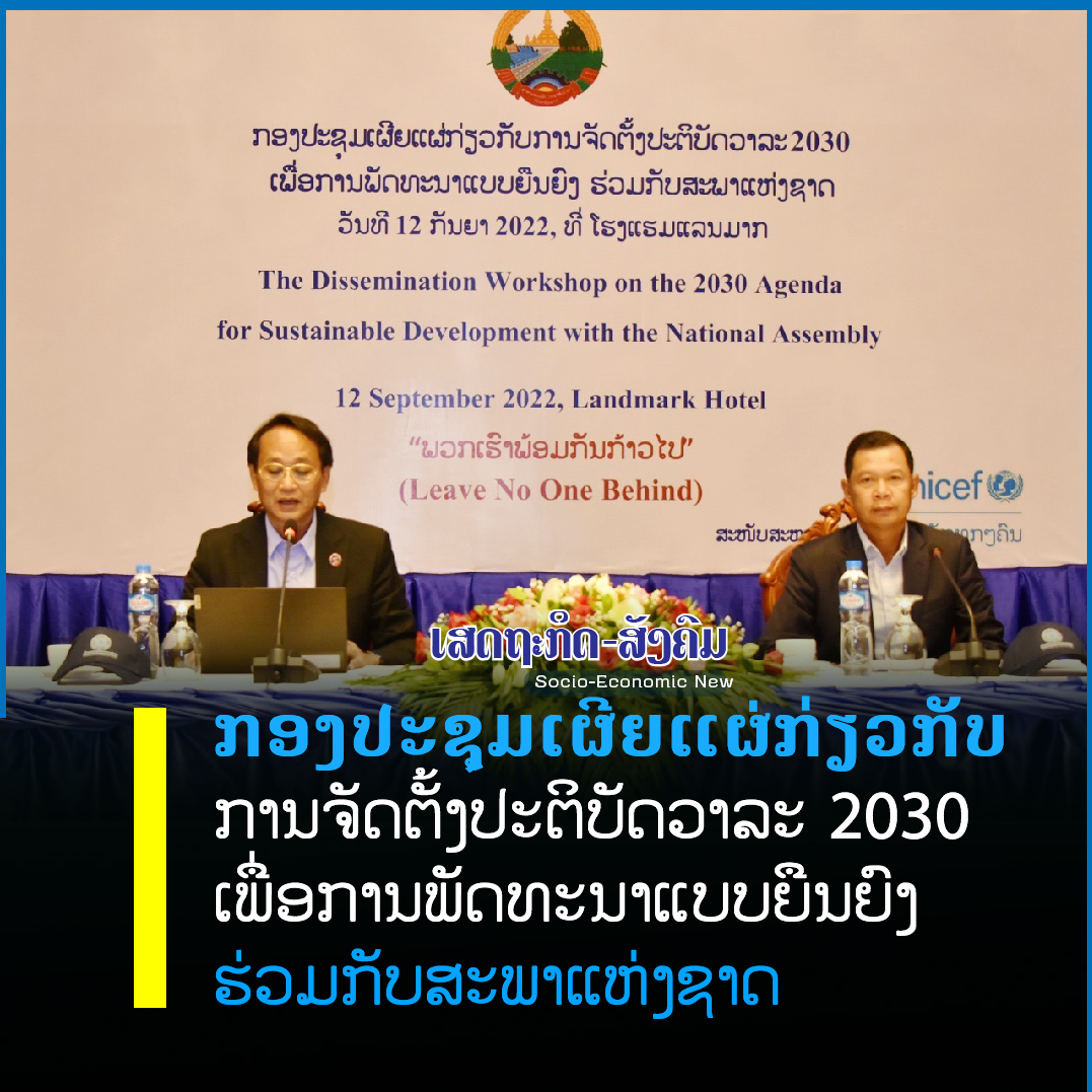 ໃນວັນທີ 12 ກັນຍາຜ່ານມາທີ່ໂຮງແຮມແລນມາກ, ນະຄອນຫຼວງວຽງຈັນ, ກົມອົງການຈັດຕັ້ງສາກົນ, ກະຊວງການຕ່າງປະເທດ, ໃນນາມເປັນກອງເລຂາຄະນະຊີ້ນໍາລະດັບຊາດເພື່ອຈັດຕັ້ງປະຕິບັດເປົ້າໝາຍການພັດທະນາແບບຍືນຍົງ (ກອງເລຂາ ປພຍ ແຫ່ງຊາດ)