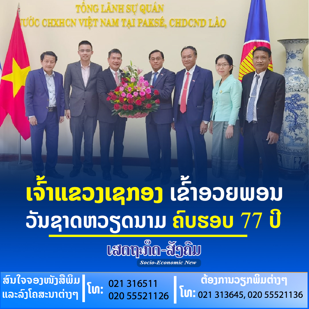 ໃນວັນທີ 1 ກັນຍາ 2022, ທ່ານ ເຫຼັກໄຫຼ ສີວິໄລ ເຈົ້າແຂວງເຊກອງ ພ້ອມຄະນະໄດ້ເຂົ້າອວຍພອນທ່ານ ຫງວຽນ ວັນ ຈຸງ ສະຖານກົງສູນແຫ່ງ ສສ ຫວຽດນາມ ປະຈຳນະຄອນປາກເຊ ແຂວງຈໍາປາສັກ ເນື່ອງໃນໂອກາດ ວັນສະຖາປະນາ ສາທາລະນະລັດ ສັງຄົມນິຍົມ ຫວຽດນາມ ຄົບຮອບ 77 ປີ