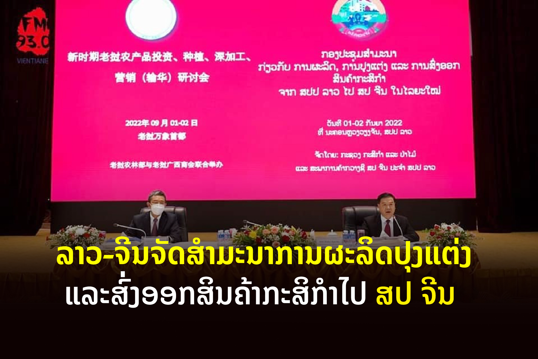 ໃນວັນທີ 1 ກັນຍາ 2022 ກະຊວງກະສິກໍາ ແລະປ່າໄມ້ (ກປ) ແຫ່ງ ສປປ ລາວ ໄດ້ຮ່ວມກັບສະພາການຄ້າແຂວງກວາງຊີແຫ່ງສປຈີນ ປະຈໍາ ສປປ ລາວ ຈັດກອງປະຊຸມສໍາມະນາກ່ຽວກັບການຜະລິດ, ການປຸງແຕ່ງ ແລະການສົ່ງອອກສິນຄ້າກະສິກໍາຈາກ ສປປ ລາວ ໄປ ສປ ຈີນ
