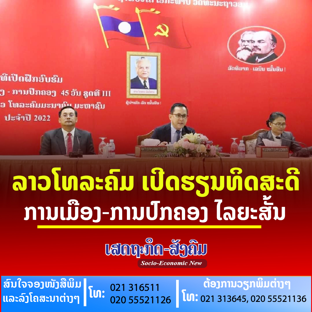 ບໍລິສັດ ລາວໂທລະຄົມມະນາຄົມມະຫາຊົນເປີດຊຸດອົບຝຶກອົບຮົມທິດສະດີການເມືອງ-ການປົກຄອງ 45 ວັນ ຊຸດທີ III ໃນວັນທີ 29 ສິງຫາ ຜ່ານມາໂດຍມີທ່ານ ສັນຕິສຸກ ສິມມາລາວົງ ຮອງເລຂາຄະນະພັກ, ຮອງລັດຖະມົນຕີ ກະຊວງເຕັກໂນໂລຊີ ແລະການສື່ສານ(ຕສ),
