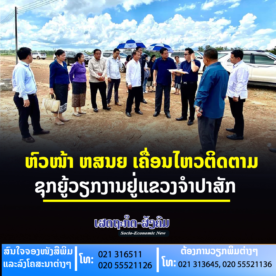 ທ່ານ ອາລຸນໄຊ ສູນນະລາດ ລັດຖະມົນຕີ ຫົວໜ້າຫ້ອງວ່າການສໍານັກງານນາຍົກລັດຖະມົນຕີ (ຫສນຍ) ພ້ອມດ້ວຍຄະນະໄດ້ເຄື່ອນໄຫວຕິດຕາມ, ຊຸກຍູ້ການຈັດຕັ້ງປະຕິບັດແຜນພັດທະນາເສດຖະກິດ-ສັງຄົມ ຕິດພັນກັບການຈັດຕັ້ງປະຕິບັດ 2 ວາລະແຫ່ງຊາດ ຢູ່ແຂວງຈໍາປາສັກ