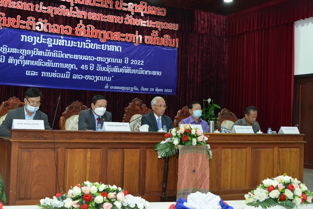 ສະພາທິດສະດີສູນກາງພັກໄດ້ຈັດກອງປະຊຸມສໍາມະນາວິທະຍາສາດ ຫົວຂໍ້ “60 ປີ ສາຍພົວພັນການທູດ, 45 ປີວັນເຊັນສົນທິສັນຍາມິດຕະພາບ ແລະການຮ່ວມມື ລາວ-ຫວຽດນາມ” ຂຶ້ນໃນວັນທີ 29 ສິງຫາ 2022 ທີ່ສະໂມສອນຄະນະໂຄສະນາອົບຮົມສູນກາງພັກ (ຄອສພ);