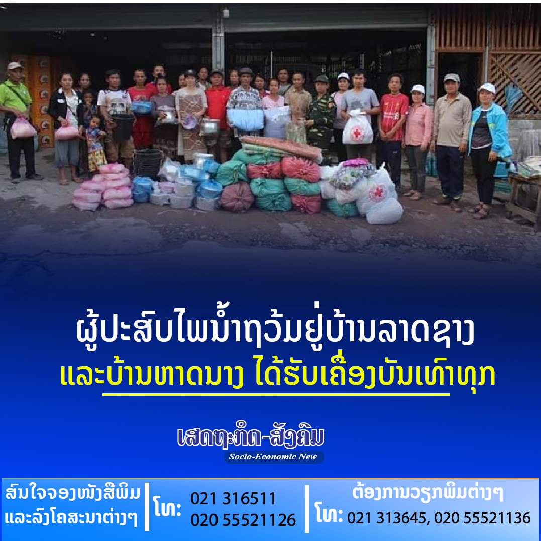 ຜູ້ປະສົບໄພນໍ້າຖວ້ມຢູ່ບ້ານລາດຊາງ ແລະບ້ານຫາດນາງ ໄດ້ຮັບເຄື່ອງບັນເທົາທຸກຈຳນວນໜຶ່ງ, ດ້ວຍຄວາມເປັນຫ່ວງໄຍຂອງພັດ-ລັດ ກໍ່ຄືອົງການປົກຄອງເມືອງທີ່ມີຕໍ່ປະຊາຊົນບັນດາເຜົ່າທີ່ປະສົບໄພທາງທຳມະຊາດນໍ້າຖ້ວມໃນຄັ້ງວັນທີ 26 ທີ່ຜ່ານມາ,