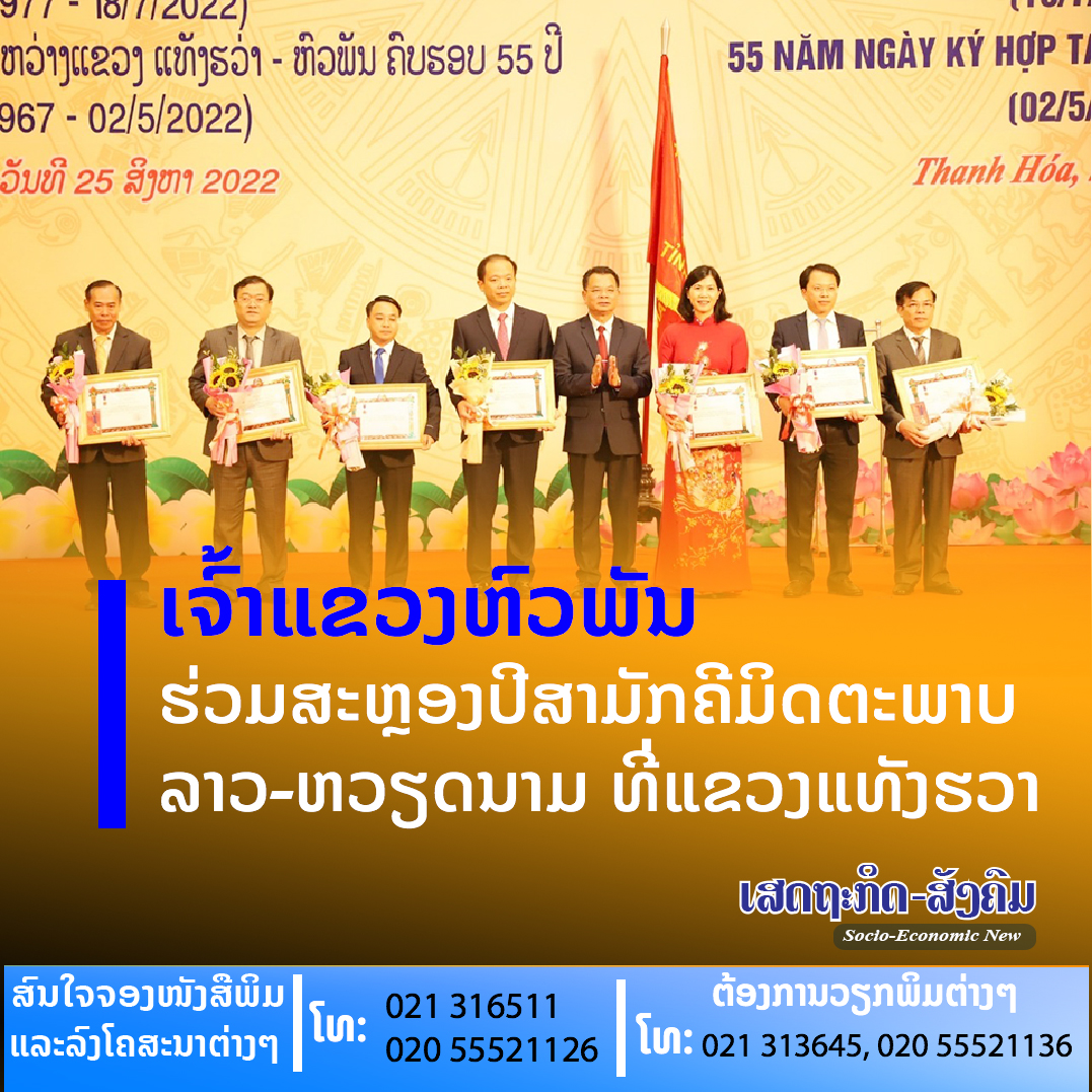 ວັນທີ 25 ສິງຫາ ຜ່ານມາ, ສະຫາຍ ວັນໄຊ ແພງຊຸມມາ ກໍາມະການສູນກາງພັກ, ເລຂາຄະນະບໍລິຫານພັກແຂວງ, ເຈົ້າແຂວງຫົວພັນພ້ອມດ້ວຍຄະນະຜູ້ແທນຂັ້ນສູງຂອງແຂວງ ໄດ້ເຂົ້າຮ່ວມ ພິທີສະເຫລີມສະຫລອງວັນສ້າງຕັ້ງສາຍພົວພັນທາງການທູດຫວຽດນາມ-ລາວ ຄົບຮອບ 60 ປີ,