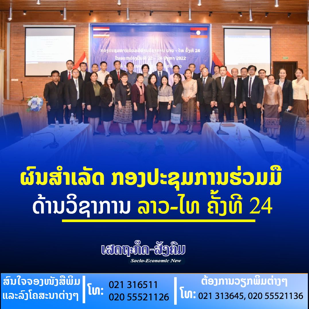ກອງປະຊຸມການຮ່ວມມືດ້ານວິຊາການ ລາວ-ໄທ ຄັ້ງທີ 24 ຈັດຂຶ້ນໃນລະຫວ່າງວັນທີ 22-25 ສິງຫາ ຜ່ານມາ, ທີ່ນະຄອນຫຼວງພະບາງ, ສປປ ລາວ ຊຶ່ງຄະນະຜູ້ແທນຝ່າຍລາວນຳໂດຍທ່ານ ວິໂຣດ ສູນດາຣາ ຫົວໜ້າກົມອາຊີ-ປາຊີຟິກ ແລະ ອາຟຣິກກາ,