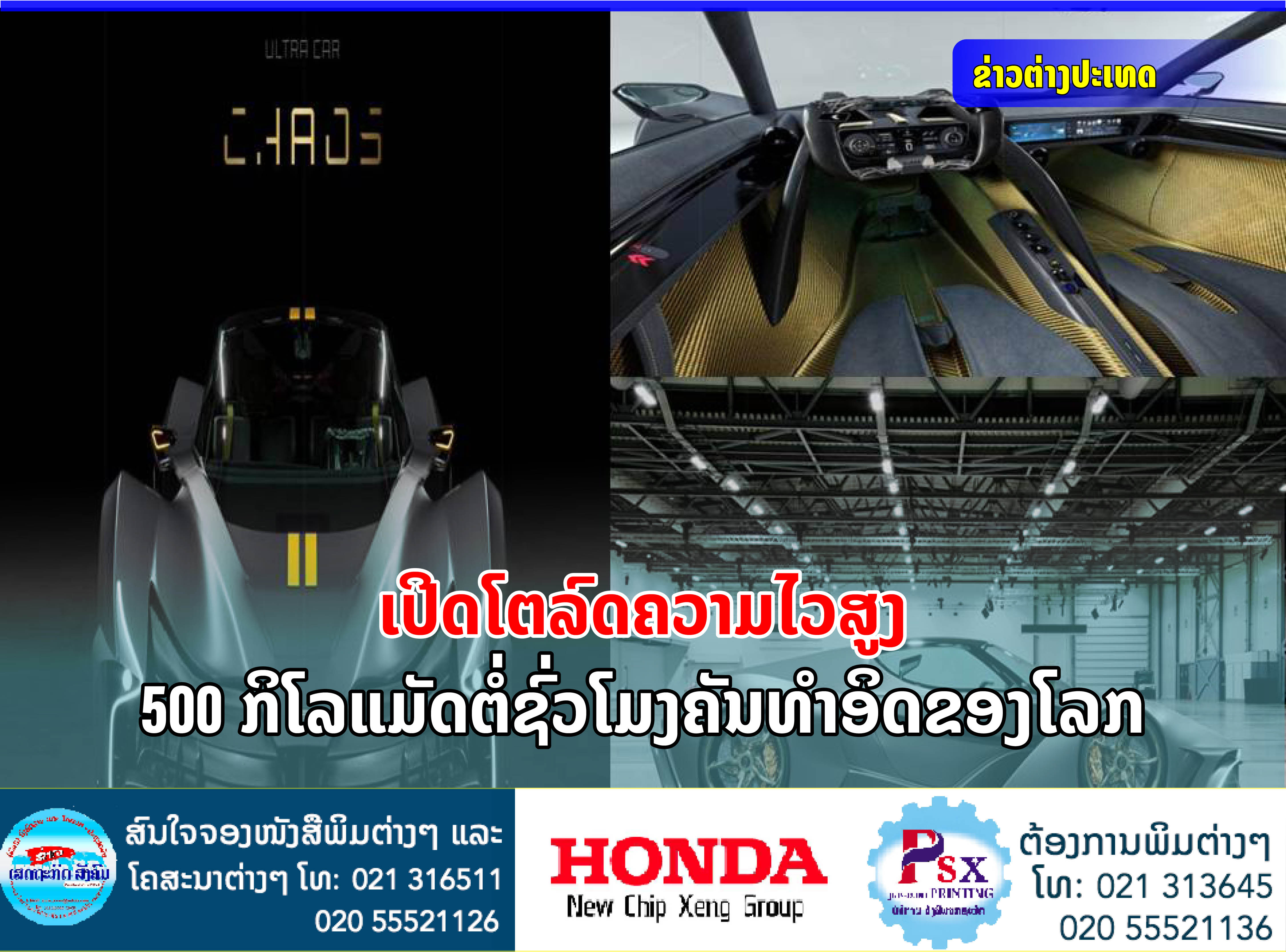 SP Automotive ເປີດໂຕລົດ Ultra car ຄັນທຳອິດຂອງໂລກກຳລັງແຮງສູງເຖິງ 3.065 ແຮງມ້າ ແລ່ນດ້ວຍຄວາມໄວສູງສຸດ 500 ກິໂລແມັດຕໍ່ຊົ່ວໂມງ.