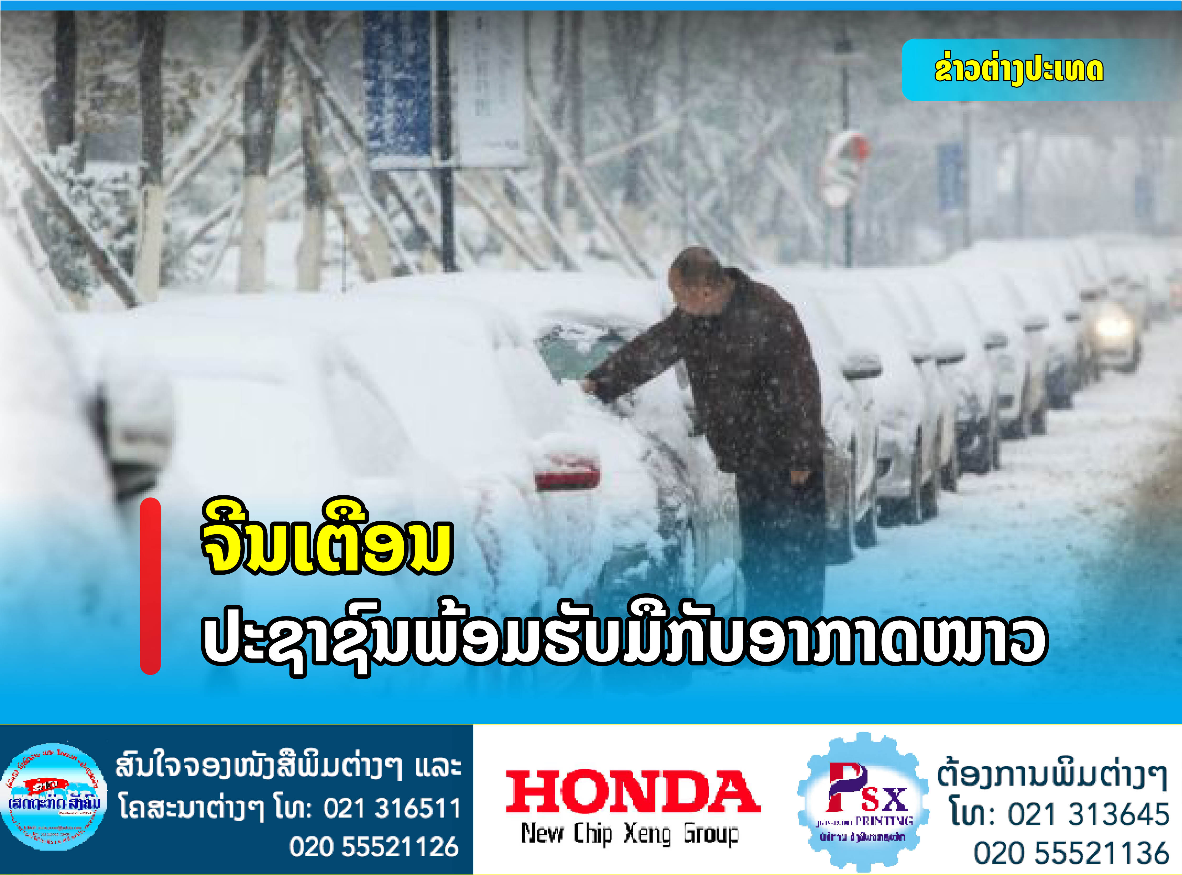 ກົມອຸຕິນິຍົມວິທະຍາແຫ່ງຊາດຂອງ ສປ ຈີນ ເຕືອນປະຊາຊົນພ້ອມຮັບມືກັບອາກາດໜາວ ຊຶ່ງອຸນຫະພູມຫຼຸດລົງຫຼາຍກວ່າ 10 ອົງສາເຊ.