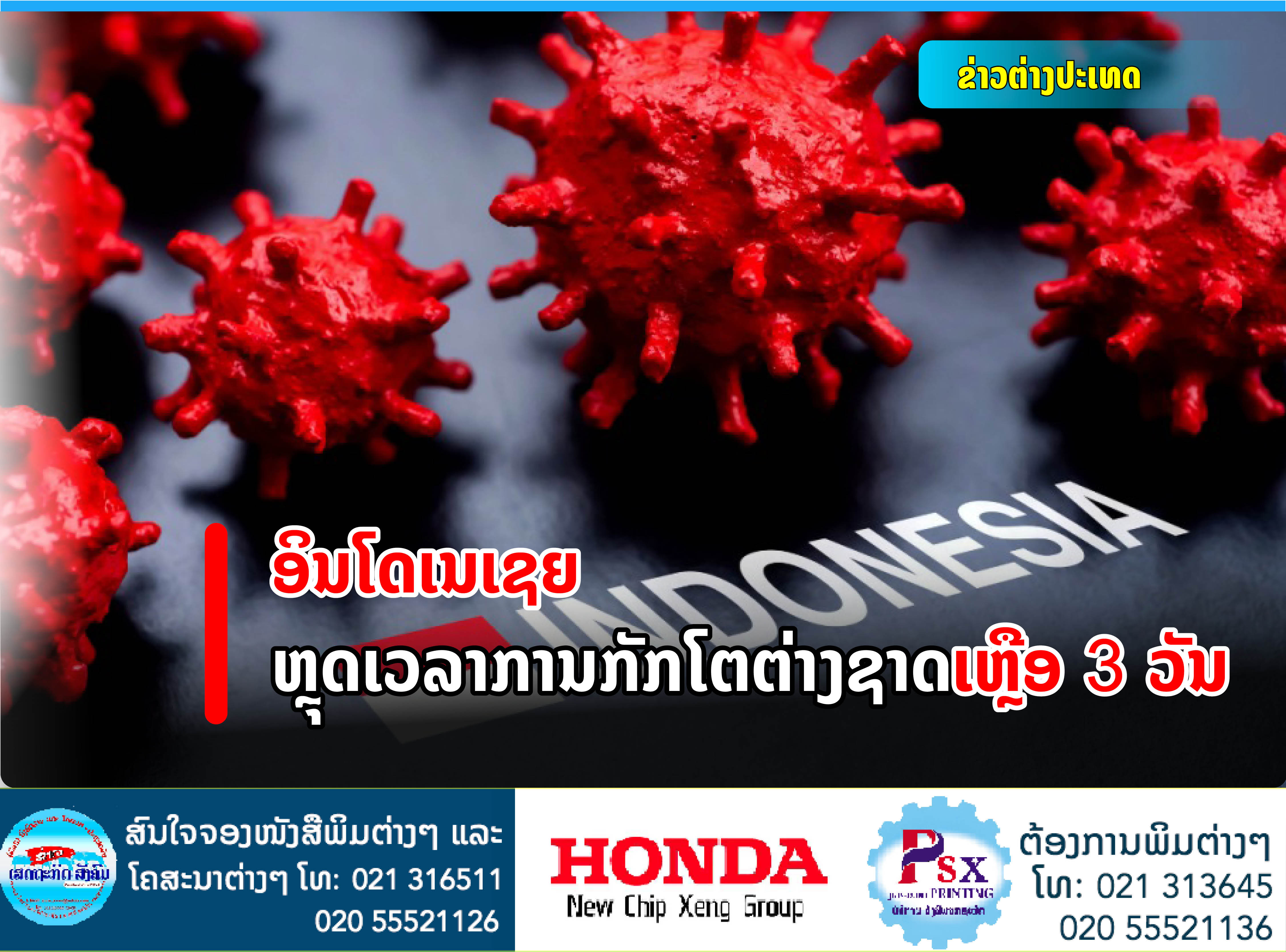 ລັດຖະບານອິນໂດເນເຊຍ ຫຼຸດເວລາການກັກໂຕໃຫ້ຜູ້ເດີນທາງຈາກຕ່າງປະເທດຈາກ 5 ວັນ ເຫຼືອ 3 ວັນ.