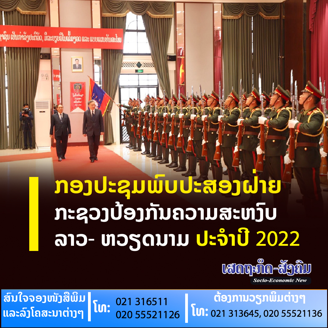 ໃນວັນທີ 24 ສິງຫາ 2022 ກອງປະຊຸມພົບປະສອງຝ່າຍ ປະຈໍາປີ 2022 ລະຫວ່າງກະຊວງປ້ອງກັນຄວາມສະຫງົບ ແຫ່ງ ສປປ ລາວ ແລະກະຊວງປ້ອງກັນຄວາມສະຫງົບ ແຫ່ງ ສສ ຫວຽດນາມ ທີ່ນະຄອນຫຼວງວຽງຈັນ ສປປ ລາວ,