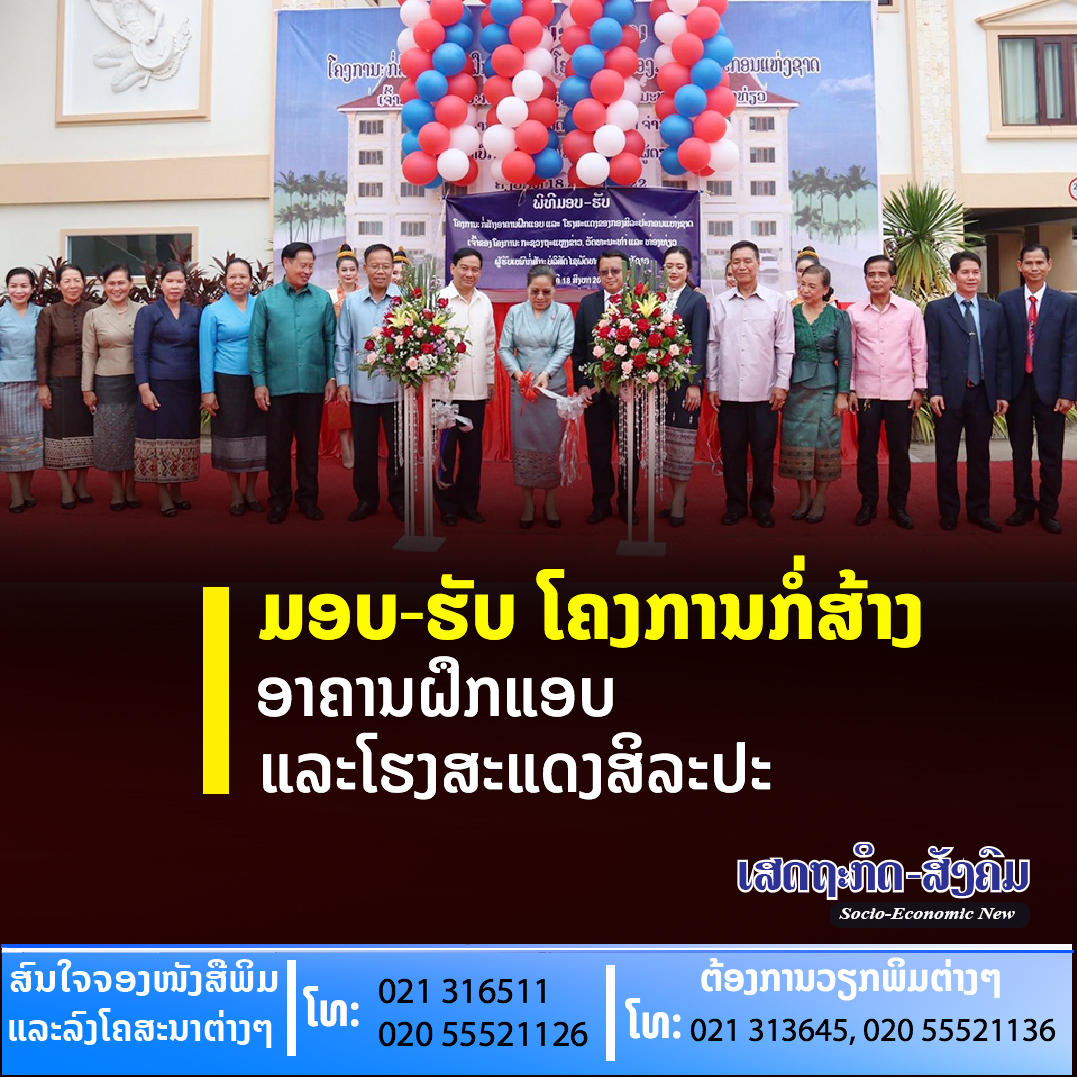ພິທີ ມອບ-ຮັບ ໂຄງການກໍ່ສ້າງ ອາຄານຝຶກແອບ ແລະໂຮງສະແດງສີລະປະຂອງກອງສິລະປະກອນແຫ່ງຊາດ ຈັດຂຶ້ນໃນວັນທີ 18 ສິງຫາ 2022 ໂດຍມີທ່ານ ນາງ ສວນສະຫວັນ ວິຍາເກດ ລັດຖະມົນຕີ ກະຊວງຖະແຫລງຂ່າວ, ວັດທະນະທຳ ແລະທ່ອງທ່ຽວ (ຖວທ),