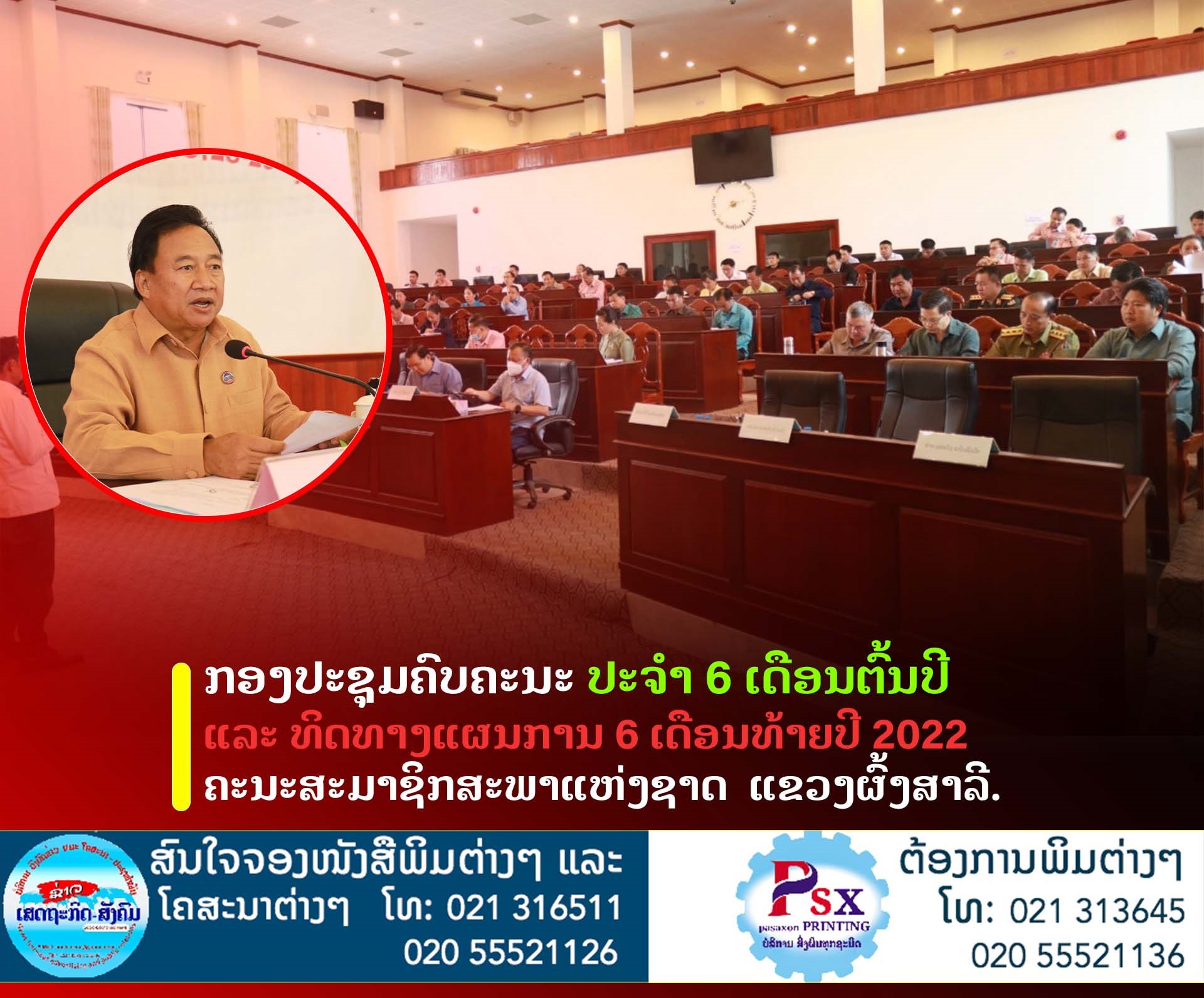 ໃນວັນທີ 22 ສິງຫາ 2022 ທີ່ຫ້ອງປະຊຸມສະພາປະຊາຊົນແຂວງ (ສພຂ) ຈັດກອງປະຊຸມຄົບຄະນະ ປະຈໍາ 6 ເດືອນຕົ້ນປີ ແລະ ທິດທາງແຜນການ 6 ເດືອນທ້າຍປີ 2022