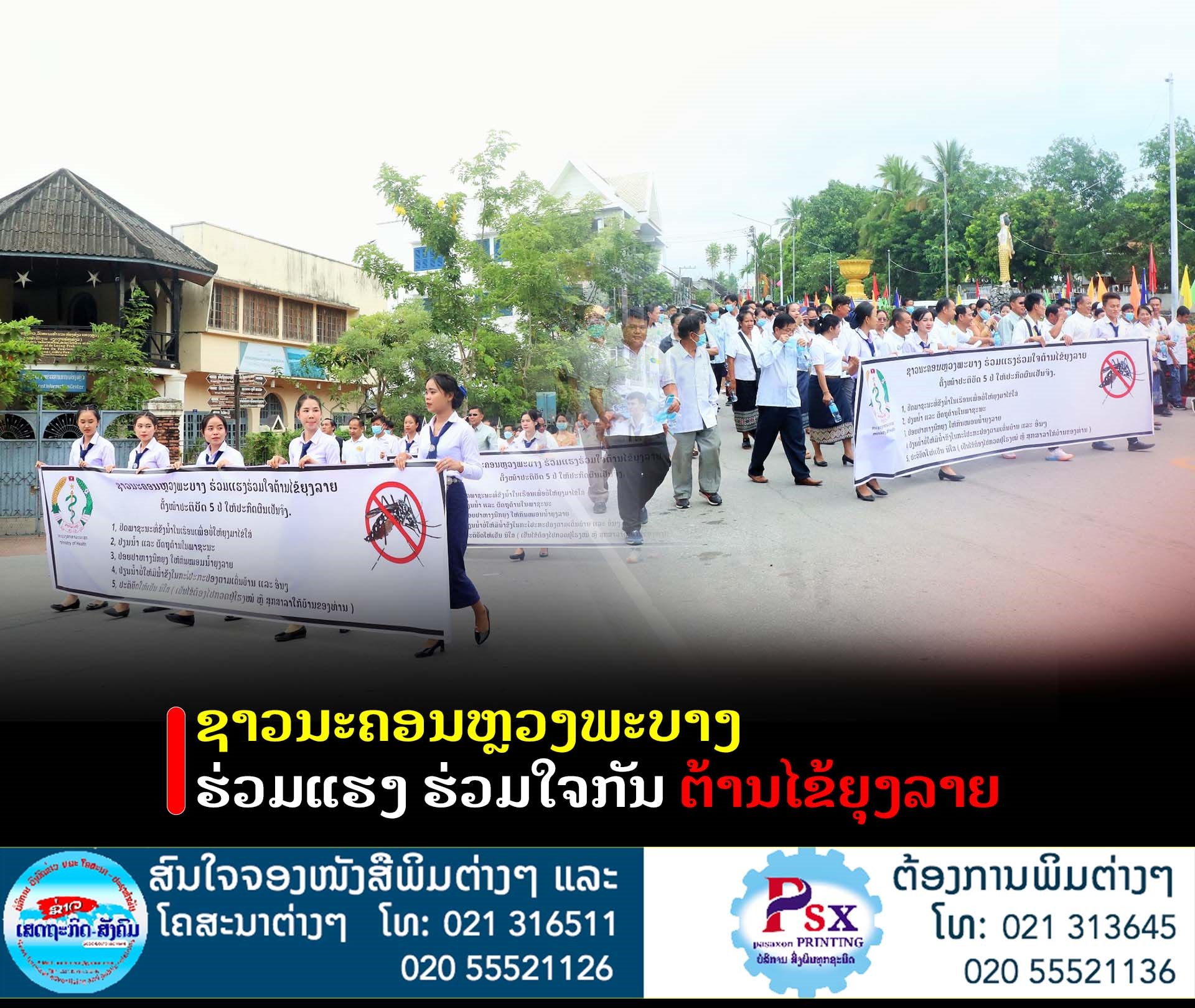 ເມື່ອວັນທີ 20 ສິງຫາ 2022 ທີ່ລາດແລງ-ຊົນເຜົ່າ ບ້ານປ່າຂາມ ນະຄອນ ຫຼວງພະບາງ ໄດ້ມີພິທີເປີດການນຳພາລົງສ້າງຂະບວນການທຳລາຍແຫຼ່ງເພາະພັນໜອນນໍ້າຍຸງລາຍຢູ່ນະຄອນຫຼວງພະບາງ,ພາຍໃຕ້ການປະຕິບັດ 5 ປໍ