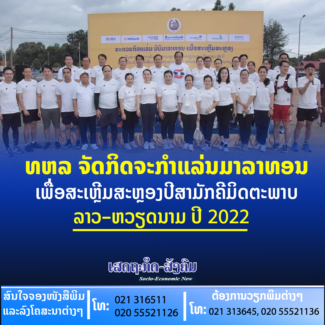 ວັນທີ 6 ສິງຫາ 2022 ທີ່ ເດີ່ນທາດຫຼວງ, ທະນາຄານແຫ່ງ ປປ ລາວ ພ້ອມດ້ວຍ ທະນາຄານທຸລະກິດຫວຽດນາມ ທີ່ດຳເນີນທຸລະກິດຢູ່ ສປປ ລາວ ໄດ້ຮ່ວມກັນຈັດກິດຈະກຳສ້າງຂະບວນການແລ່ນມາລາທອນ ໄລຍະ 5 ກິໂລແມັດ