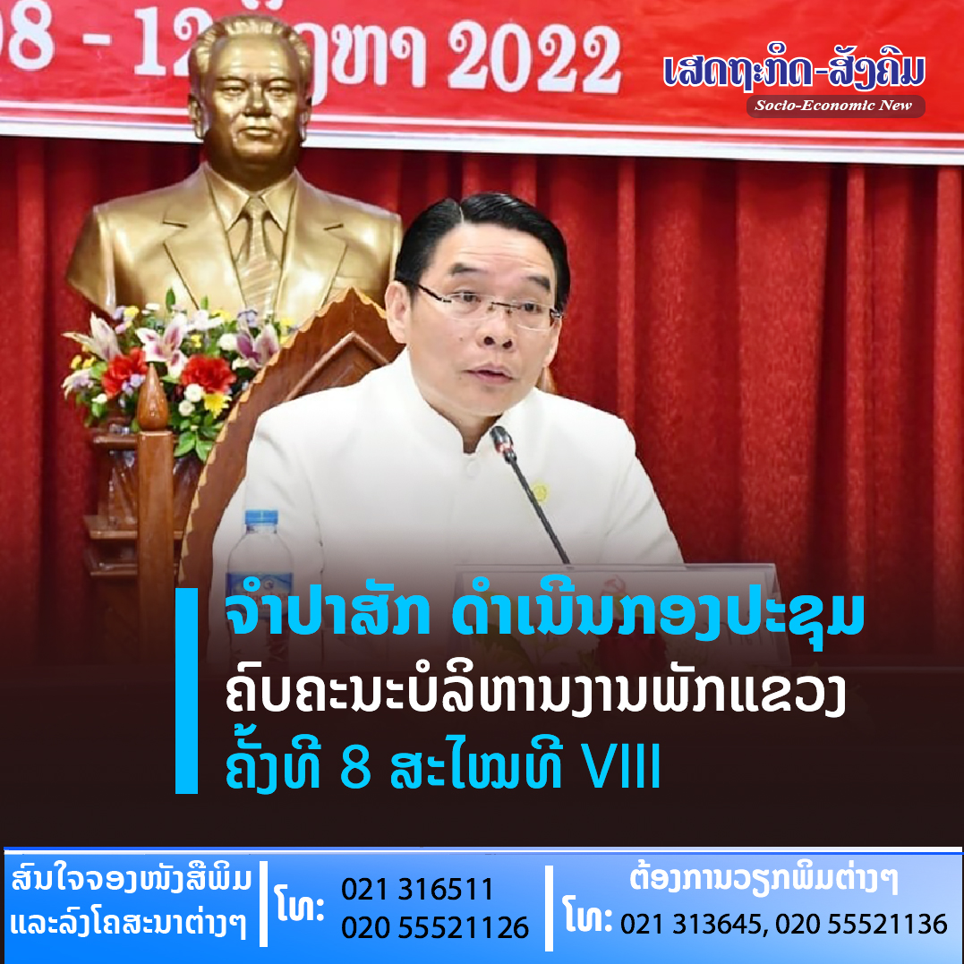 ໃນວັນທີ 8 ກໍລະກົດ 2022 ກອງປະຊຸມຄົບຄະນະບໍລິຫານງານພັກແຂວງຈໍາປາສັກ ຄັ້ງທີ 8 ສະໄໝທີ VIII ໂດຍການເປັນປະທານຂອງ ທ່ານ ວິໄລວົງ ບຸດດາຄຳ ເລຂາພັກແຂວງ, ເຈົ້າແຂວງຈຳປາສັກ, ມີທ່ານຮອງເລຂາພັກແຂວງ, ຄະນະປະຈຳພັກແຂວງ, ກໍາມະການພັກແຂວງ, ເລຂາພັກເມືອງ,