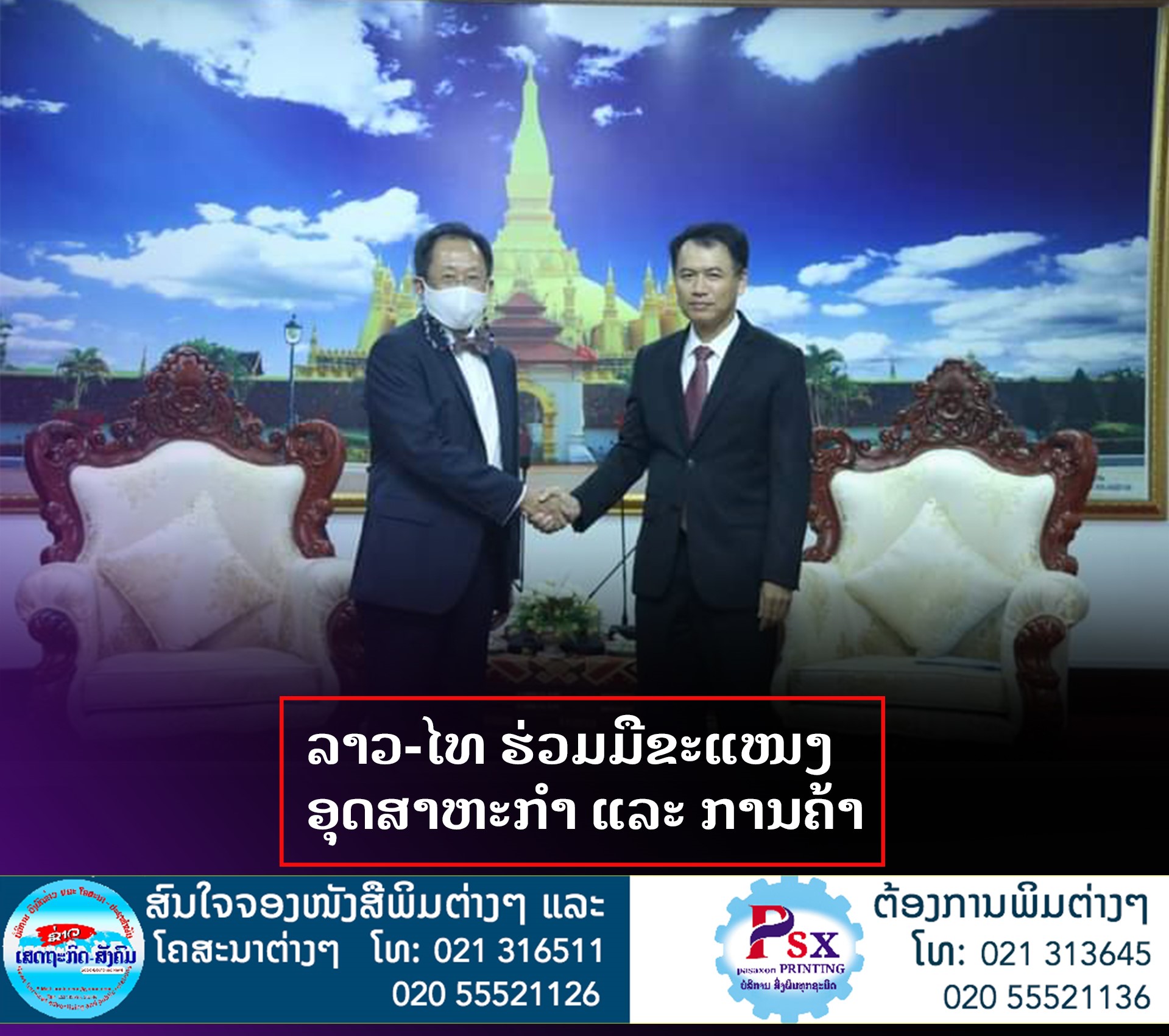ທ່ານ ມະໄລທອງ ກົມມະສິດ ລັດຖະມົນຕີ ກະຊວງອຸດສາຫະກຳ ແລະ ການຄ້າ (ອຄ) ໄດ້ຕ້ອນຮັບ ທ່ານ ເຈດສະດາ ກະຕາເວທິນ ເອກອັກຄະຣາຊະທູດ ແຫ່ງ ຣາຊະອານາຈັກໄທ