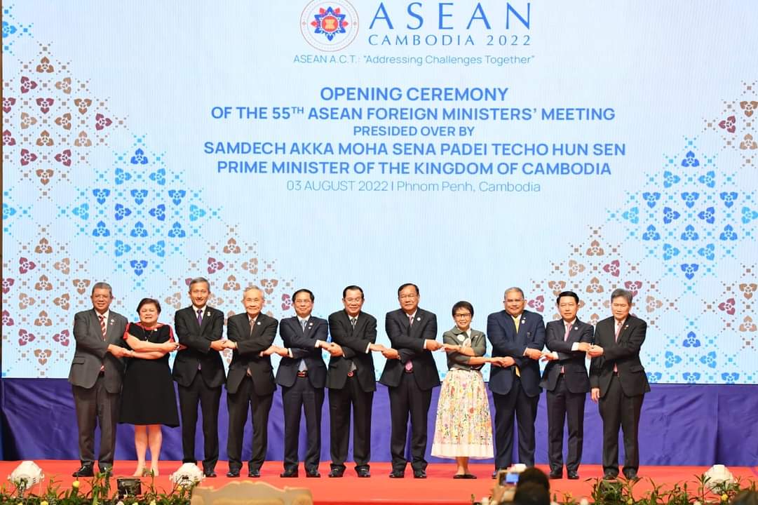 ກອງປະຊຸມລັດຖະມົນຕີຕ່າງປະເທດອາຊຽນ ຄັ້ງທີ 55 ພາຍໃຕ້ຄໍາຂວັນ “ອາຊຽນ: ຮ່ວມກັນແກ້ໄຂບັນດາສິ່ງທ້າທາຍ” ໄດ້ໄຂຂຶ້ນຢ່າງເປັນທາງການ ໃນວັນທີ 3 ສິງຫາ 2022