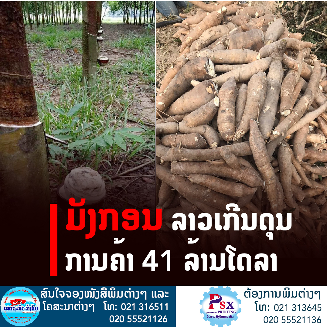 ມູນຄ່າການນໍາເຂົ້າ-ສົ່ງອອກຂອງ ສປປ ລາວ ປະຈໍາເດືອນມັງກອນ 2022, ບັນລຸໄດ້ປະ ມານ 1.156 ລ້ານໂດລາສະຫະລັດ. ໃນນັ້ນ, ມູນຄ່າການສົ່ງອອກມີປະມານ 598 ລ້ານໂດລາ, ມູນຄ່າການນໍາເຂົ້າມີປະມານ 557 ລ້ານໂດລາ, ຊຶ່ງເກີນດຸນການຄ້າປະມານ 41 ລ້ານໂດລາ (ໃນນີ້ຍັງບໍ່ລວມການສົ່ງອອກໄຟຟ້າ).