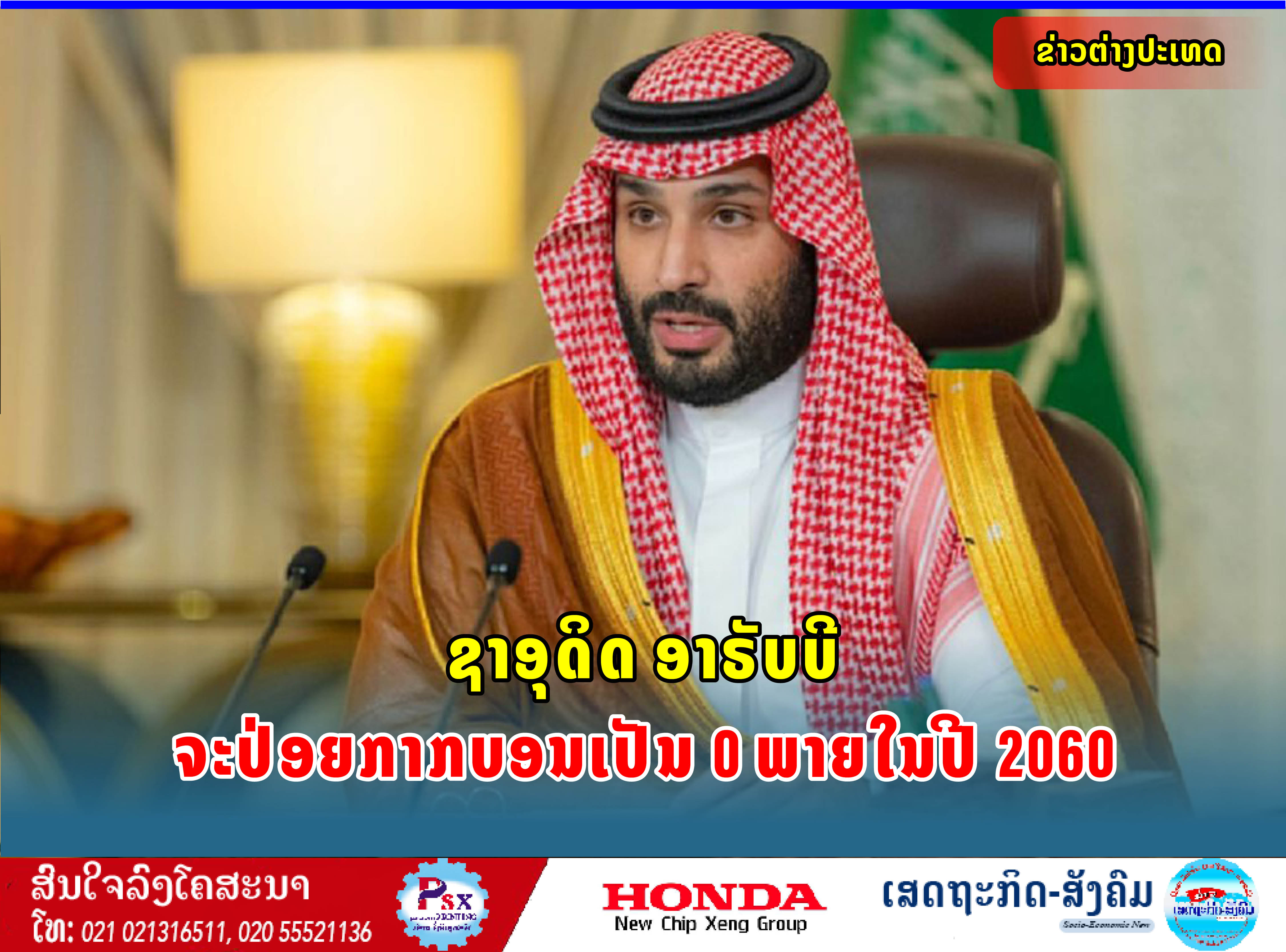 ຊາອຸດິດອາຣັບບີ ປະກາດຈະປ່ອຍອາຍພິດເຮືອນແກ້ວເປັນ 0 ພາຍໃນປີ 2060 ເພື່ອຮ່ວມກັບອີກ 100 ກວ່າປະເທດທີ່ຫາທາງຮັບມື ແລະຈຳກັດການປ່ຽນແປງສະພາບອາກາດທີ່ເກີດຈາກກິດຈະກຳຂອງຄົນ.