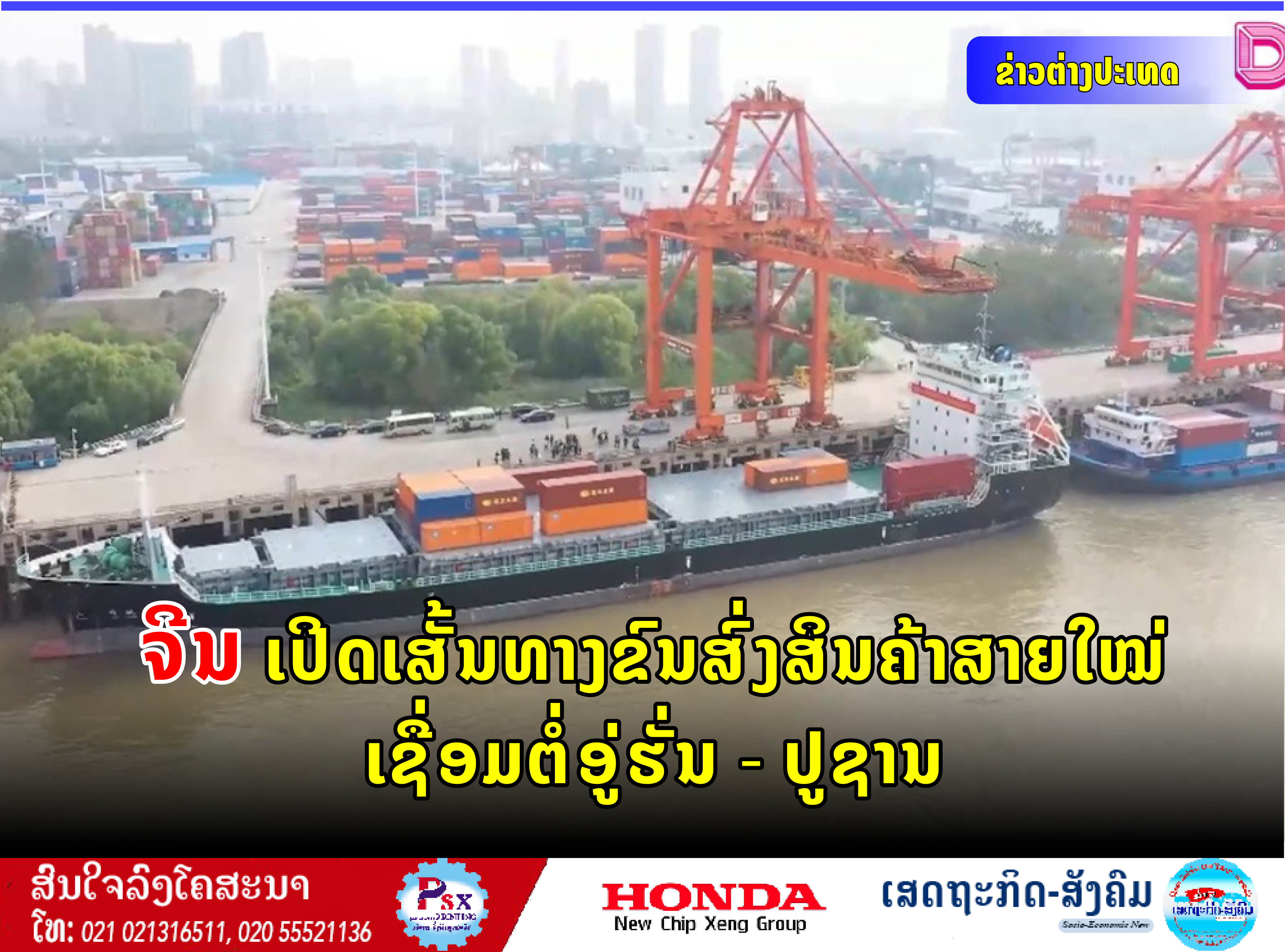 ສປ ຈີນເປີດເສັ້ນທາງຂົນສົ່ງສິນຄ້າທາງກຳປັ່ນສາຍໃໝ່ເຊື່ອມຕໍ່ລະຫວ່າງເມືອງອູ່ຮັ່ນ-ປູຊານ ຫວັງສົ່ງເສີມການຄ້າລະຫວ່າງສ.ເກົາຫຼີ.