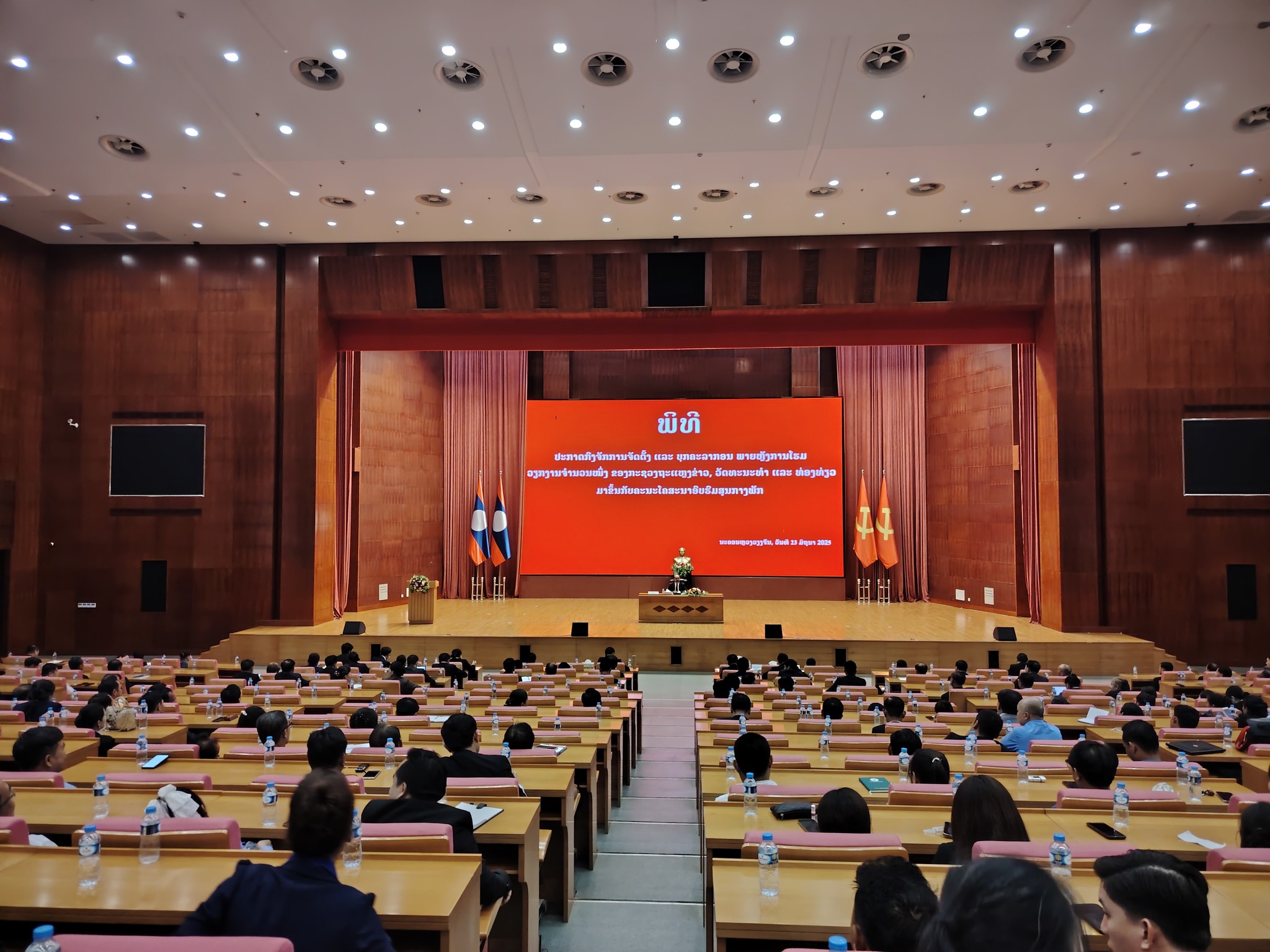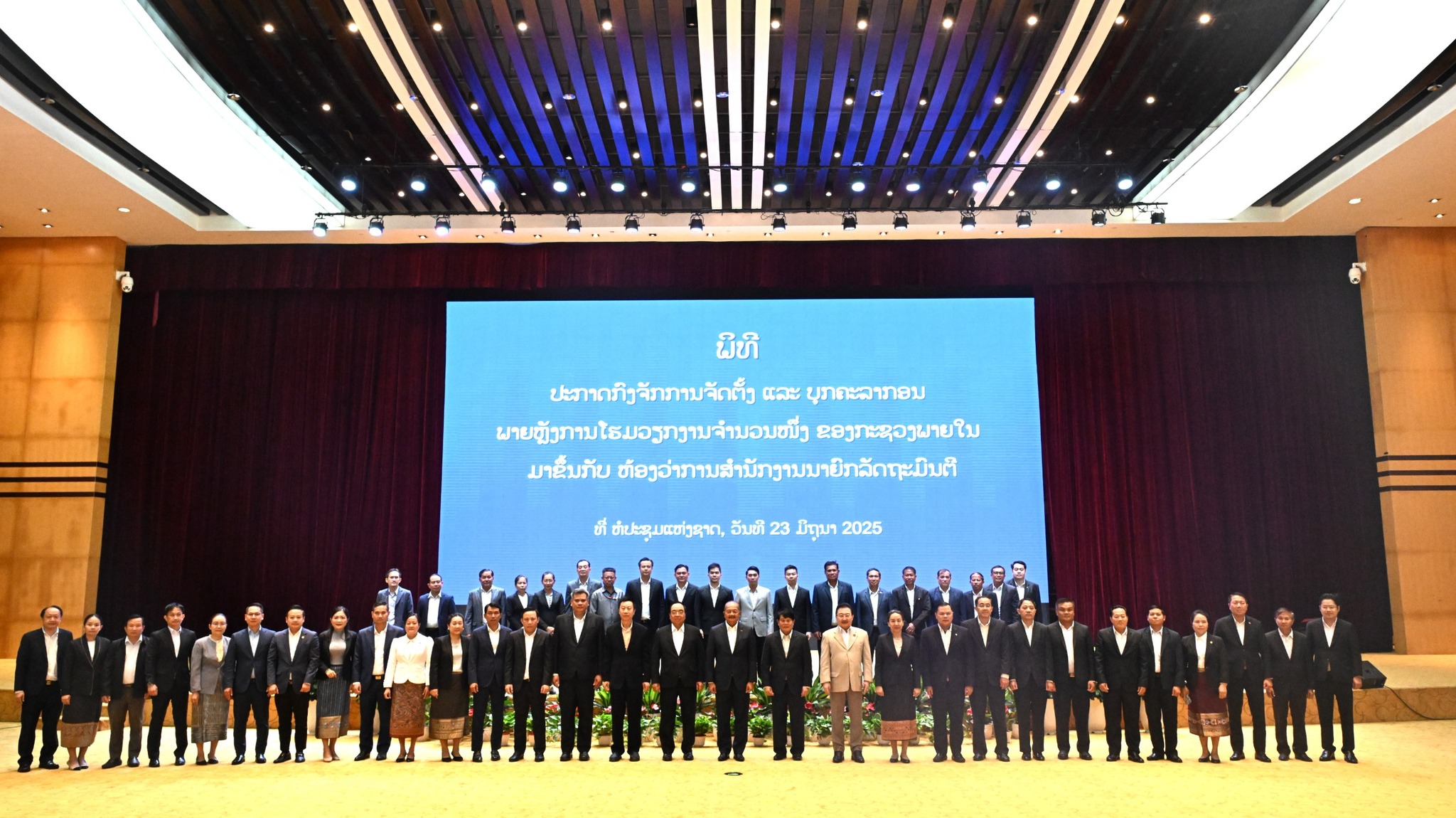ໃນຕອນເຊົ້າວັນທີ 23 ມິຖຸນາ 2025 ທີ່ຫໍປະຊຸມແຫ່ງຊາດ ໄດ້ຈັດພິທີປະກາດການຈັດຕັ້ງ ຫ້ອງວ່າການສໍານັກງານນາຍົກລັດຖະມົນຕີ (ຫສນຍ)
