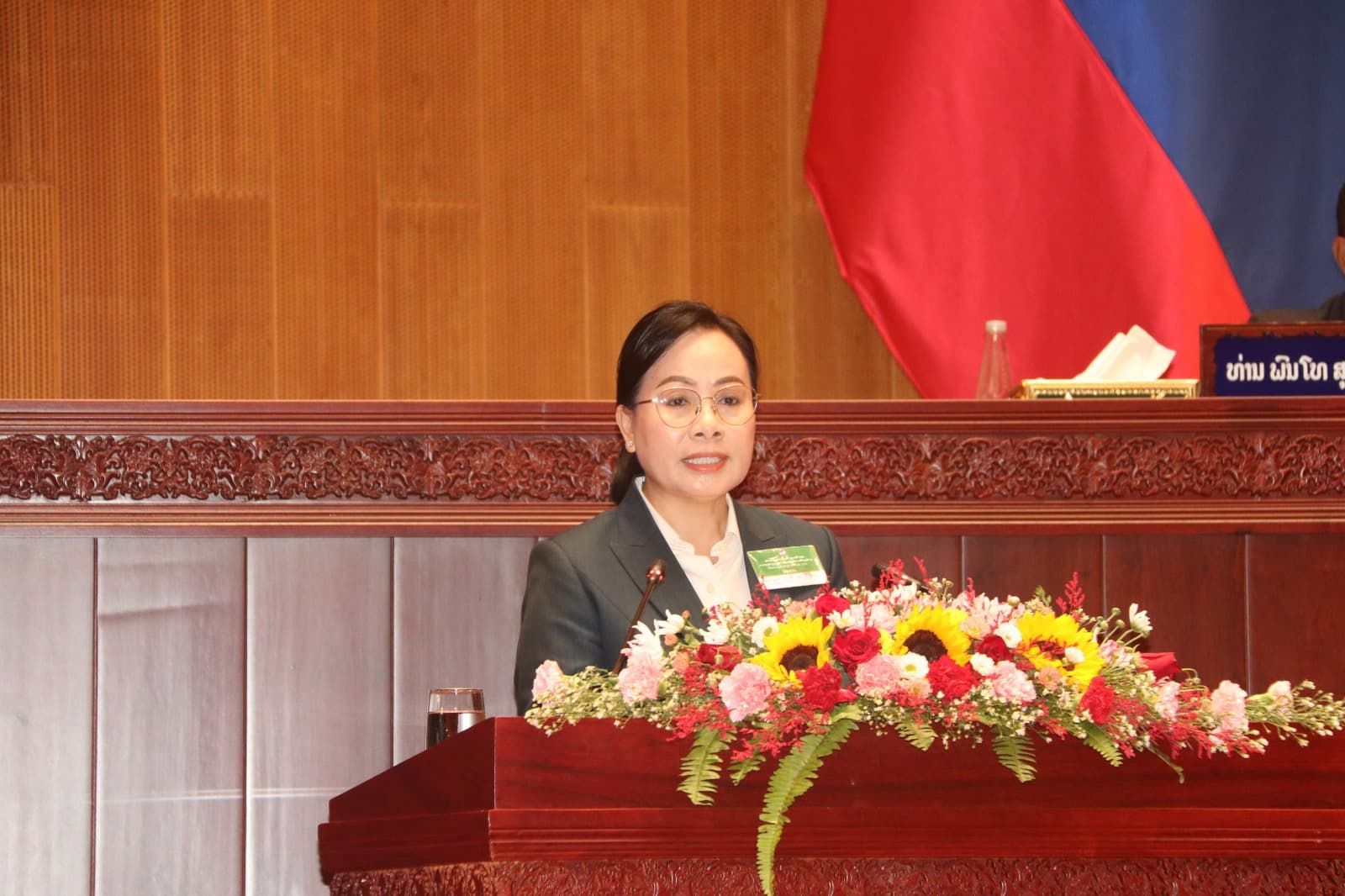 ທ່ານນາງ ແກ້ວ ຈັນທະວີໄຊ ຮອງລັດຖະມົນຕີກະຊວງແຮງງານ ແລະ ສະຫວັດດີການສັງຄົມ (ຮສສ) ໄດ້ສະເໜີກ່ຽວກັບການສ້າງກົດໝາຍວ່າດ້ວຍສັງຄົມສົງເຄາະ