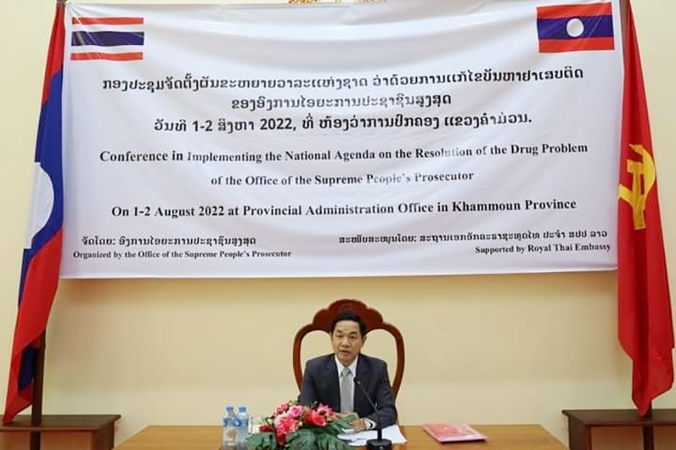 ກອງປະຊຸມຈັດຕັ້ງຜັນຂະຫຍາຍວາລະແຫ່ງຊາດວ່າດ້ວຍການແກ້ໄຂບັນຫາຢາເສບຕິດໃຫ້ແກ່ພະນັກງານອົງການໄອຍະການປະຊາຊົນ ແລະ ເຈົ້າໜ້າທີ່ຕຳຫຼວດ 3 ແຂວງພາກກາງຈັດຂຶ້ນໃນວັນທີ 1 ສິງຫາ 2022