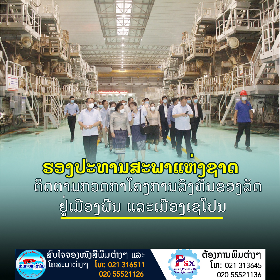 ນວັນທີ 30-31 ກໍລະກົດນີ້, ທ່ານ ນາງ ສູນທອນ ໄຊຍະຈັກ ຮອງປະທານສະພາແຫ່ງຊາດ ພ້ອມດ້ວຍຄະນະໄດ້ລົງເຄື່ອນໄຫວຕິດຕາມກວດກາການຈັດຕັ້ງປະຕິບັດ ໂຄງການລົງທຶນຂອງລັດຢູ່ເຂື່ອນໄຟຟ້າເຊລະນອງ 1 ເມືອງພີນ ແລະບໍລິສັດຊັນເປເປີ ເມືອງເຊໂປນ ແຂວງສະຫວັນນະເຂດ