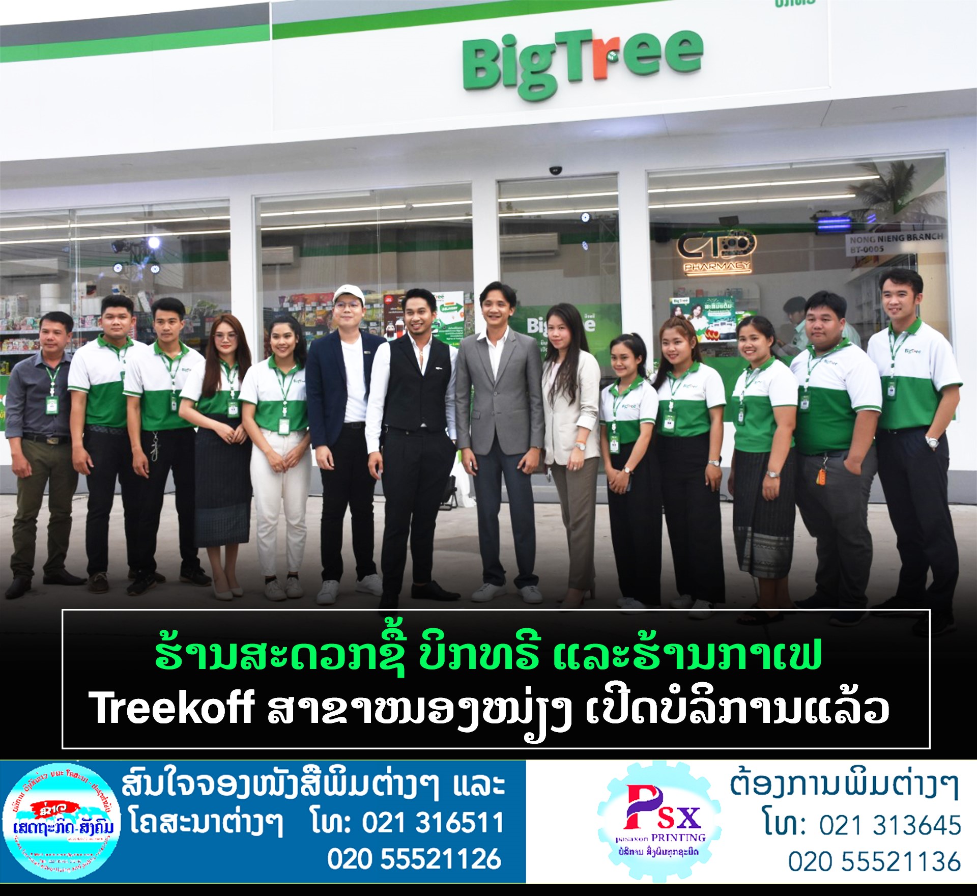 ວັນທີ 29 ກໍລະກົດ ຜ່ານມາ ທີ່ນະຄອນຫຼວງວຽງຈັນ ບໍລິສັດ ບິກທຣີ ການຄ້າ ຈໍາກັດ ໄດ້ຈັດພິທີເປີດຮ້ານສະດວກຊື້ BigTree ແລະຮ້ານກາເຟ Treekoff ສາຂາໃໝ່ ຕັ້ງຢູ່ບ້ານໜອງໜ່ຽງ