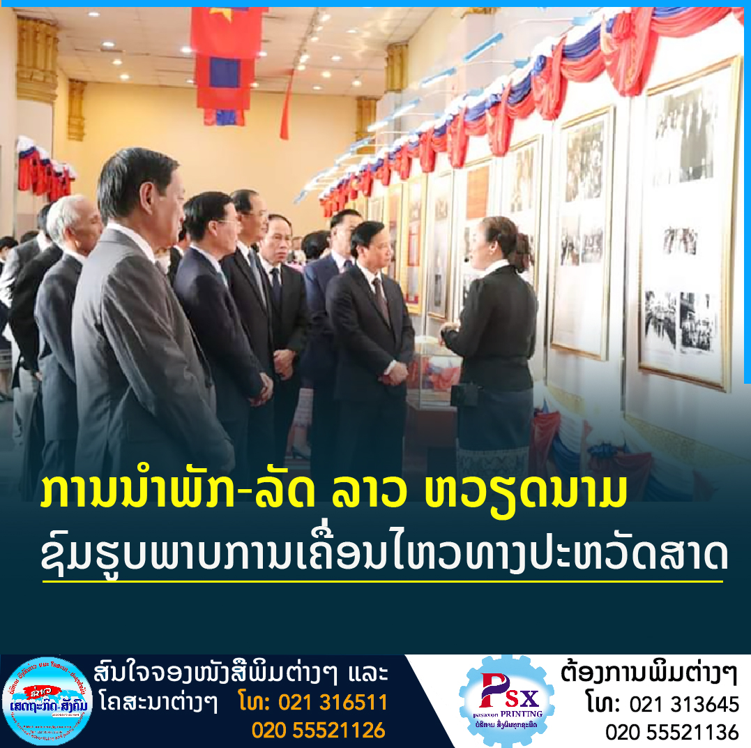 ໃນວັນທີ 17 ກໍລະກົດນີ້ ທີ່ຫໍພິພິທະພັນໄກສອນ ພົມວິຫານ ການນໍາພັກ, ລັດ ລາວ-ຫວຽດນາມ, ເຂົ້າຮ່ວມພິທີວາງ ສະແດງຮູບພາບ, ເອກະສານ, ວັດຖຸພັນ ແລະປຶ້ມພາຍໃຕ້ຫົວຂໍ້ “ສາຍພົວພັນມິດຕະພາບທີ່ຍິ່ງໃຫຍ່, ຄວາມສາມັກຄີພິເສດ ແລະ ການຮ່ວມມືຮອບດ້ານ ລາວ-ຫວຽດນາມ,