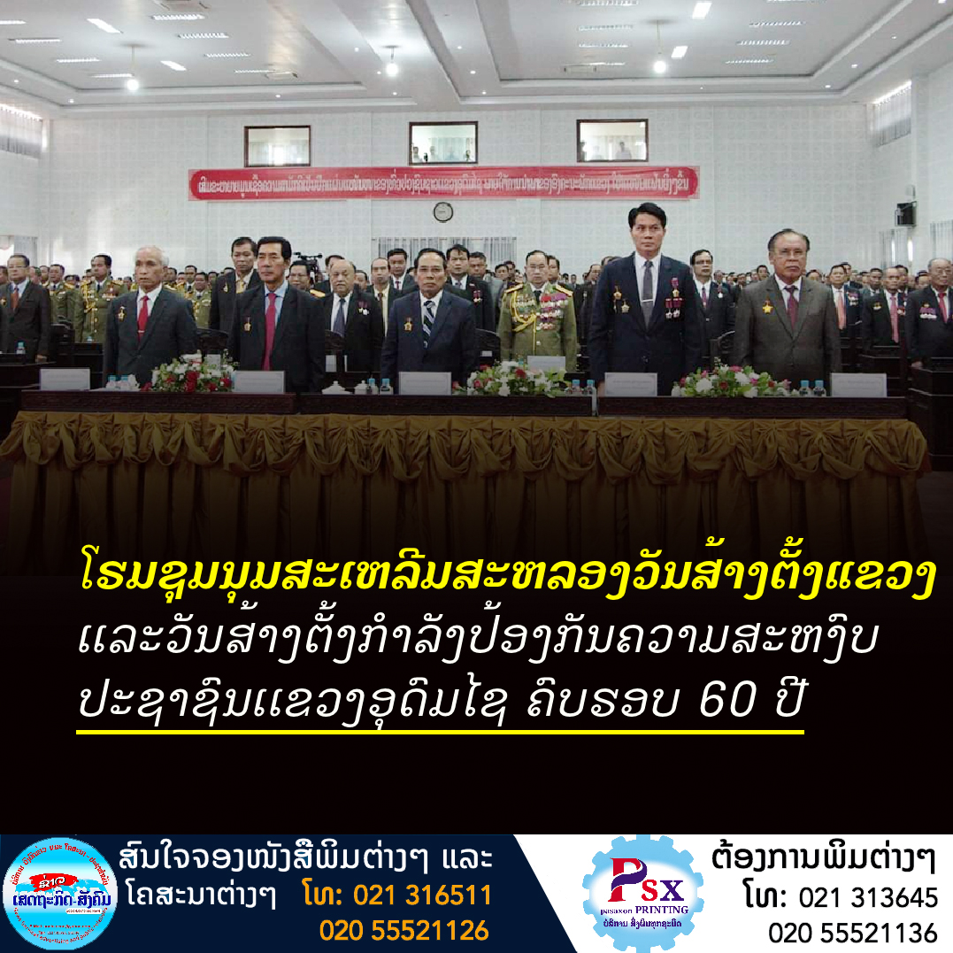 ພີທີໂຮມຊຸມນຸມສະເຫລີມສະຫລອງວັນສ້າງຕັ້ງແຂວງອຸດົມໄຊ ວັນທີ 15 ກໍລະກົດ 1962 ຄົບຮອບ 60 ປີ ເເລະວັນສ້າງຕັ້ງກໍາລັງປ້ອງກັນຄວາມສະຫງົບປະຊາຊົນເເຂວງອຸດົມໄຊ ວັນທີ 4 ເມສາ 1962 ຄົບຮອບ 60 ປີ ຈັດຂື້ນໃນຕອນເຊົ້າວັນທີ 15 ກໍລະກົດ 2022