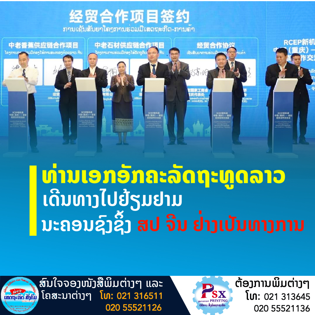 ໃນລະຫວ່າງວັນທີ 04-08 ກໍລະກົດ 2022 ທ່ານ ນາງ ຄຳເພົາ ເອີນທະວັນ, ເອກອັກຄະລັດຖະທູດ ແຫ່ງ ສປປ ລາວ ປະຈຳ ສປ ຈີນ ໄດ້ເດີນທາງໄປຢ້ຽມຢາມເຮັດວຽກຢູ່ນະຄອນຊົງຊິ້ງ, ສປ ຈີນ ຕາມໜັງສືເຊື້ອເຊີນຂອງພະແນກການຕ່າງປະ ເທດນະຄອນຊົງຊິ້ງ.