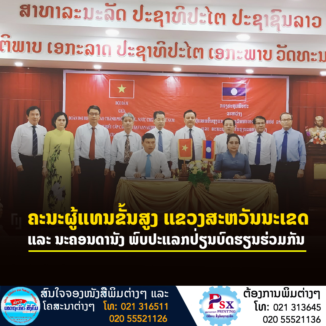 ກອງປະຊຸມພົບປະລະຫວ່າງຄະນະຜູ້ແທນຂັ້ນສູງຂອງແຂວງສະຫວັນນະເຂດ ສປປ ລາວ ແລະ ຄະນະຜູ້ແທນຂັ້ນສູງນະຄອນດານັງ ສສ ຫວຽດນາມ ໄດ້ຈັດຂຶ້ນໃນຄັ້ງວັນທີ 7 ກໍລະກົດ 2022 ທີ່ຫ້ອງປະຊຸມຫ້ອງວ່າການປົກຄອງແຂວງສະຫວັນນະເຂດຝ່າຍແຂວງສະຫວັນນະເຂດ