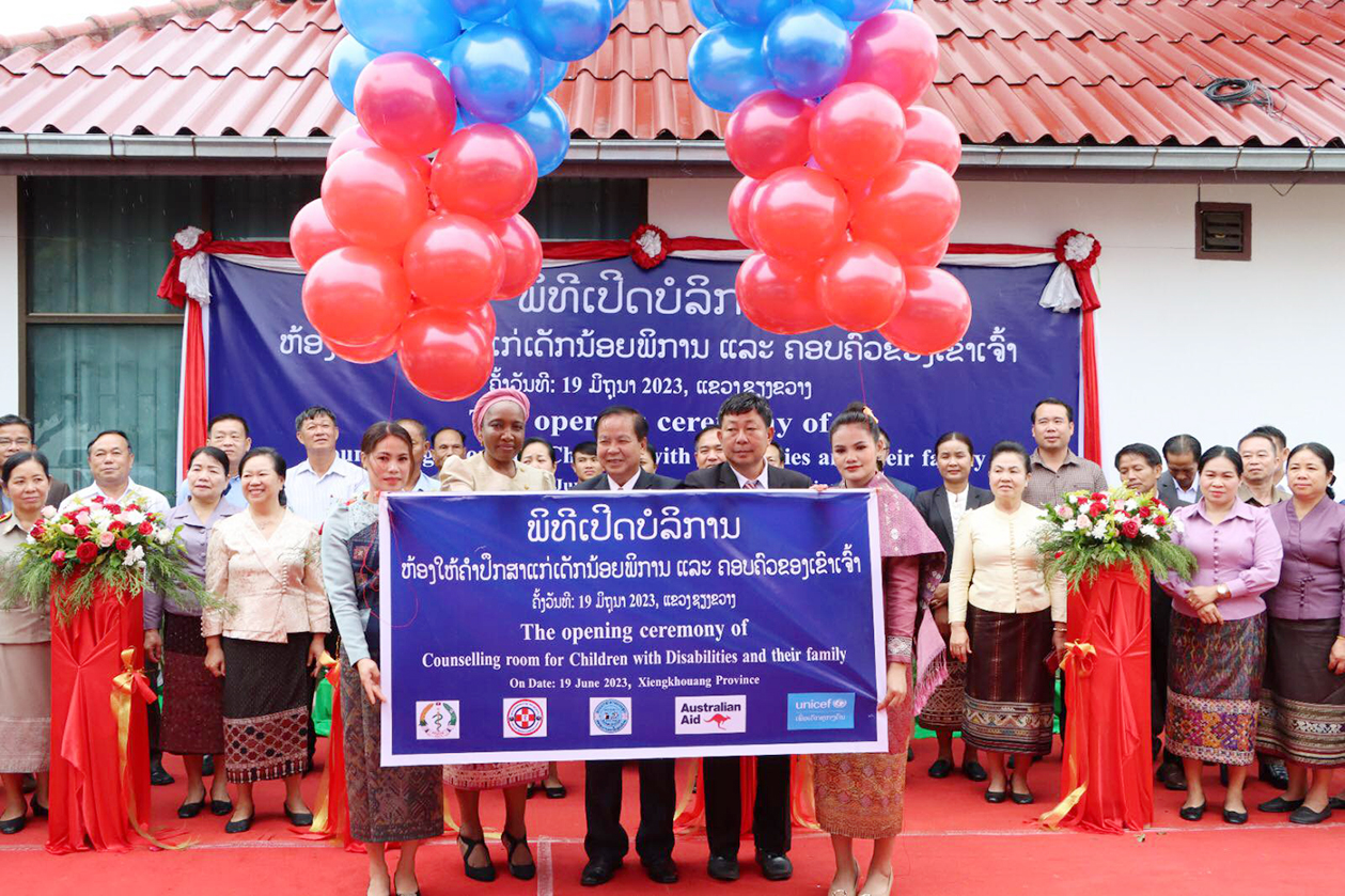 ວັນທີ 19 ມິຖຸນາ 2023 ພະແນກສາທາລະນະສຸກແຂວງຂຽງຂວາງ ຮ່ວມກັບ ກະຊວງແຮງງານ ແລະສະຫວັດດີການສັງຄົມ ແລະການສະໜັບສະໜູນຈາກອົງການຢູນີເຊັບ ໄດ້ຈັດພິທີໄຂຫ້ອງໃຫ້ຄໍາປຶກສາແກ່ເດັກພິການ ແລະຄອບຄົວ ຂອງພວກເຂົາແຫ່ງທໍາອິດຢູ່ແຂວງຊຽງຂວາງ.