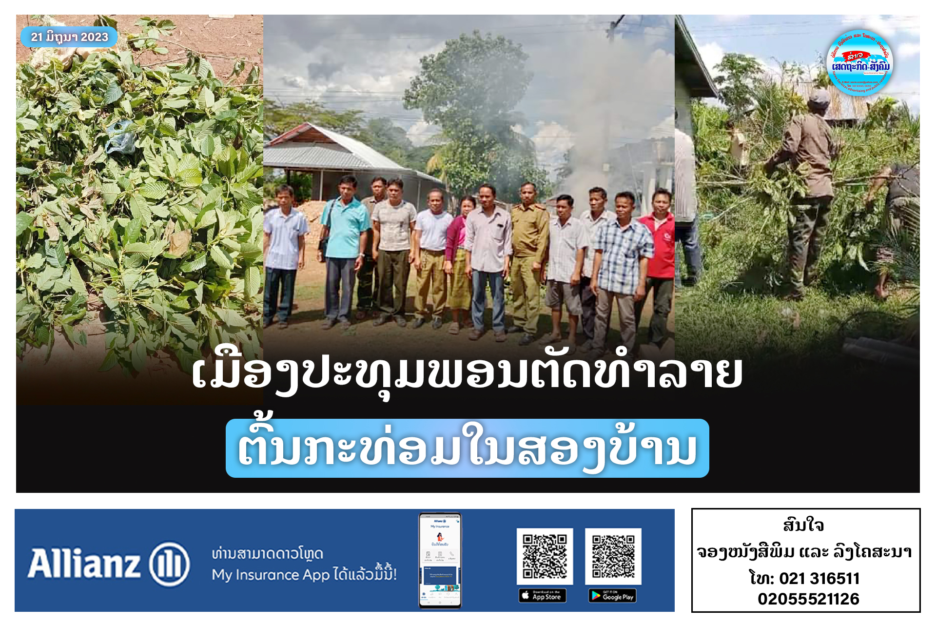 ວັນທີ 20 ມິຖຸນາ 2023 ນີ້, ກຸ່ມ IV ປະທຸມພອນ ແຂວງຈຳປາສັກ ໄດ້ລົງຕັດທຳລາຍຕົ້ນກະທ່ອມ 12 ຕົ້ນ ຄື: