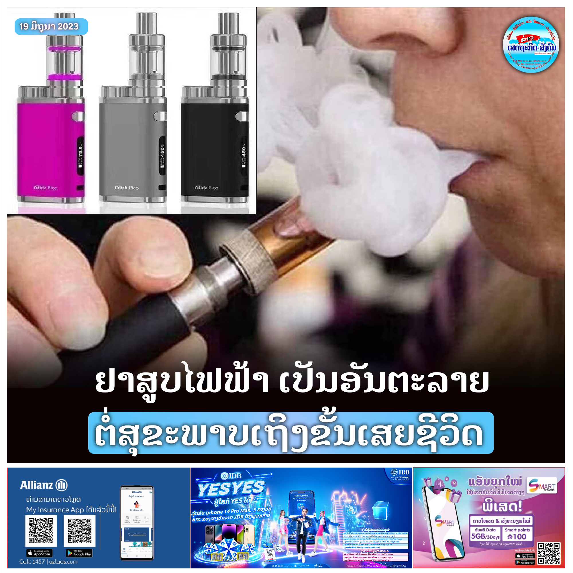 ຢາສູບໄຟຟ້າ ເປັນໜຶ່ງຜະລິດຕະພັນຢາສູບທີ່ມີສານເສບຕິດຊະນິດນີໂກຕິນ ທີ່ເປັນອັນຕະລາຍຕໍ່ສຸຂະພາບອັນຮ້າຍແຮງຕໍ່ຜູ້ສູບໃນໄລຍະຍາວ ແລະເຖິງຂັ້ນເສຍຊີວິດ. ປະຈຸບັນກໍາລັງເປັນທີ່ນິຍົມຂອງລູກຫຼານ, ໄວໝຸ່ມ ແລະໄວອື່ນໆໃນໂລກ ແລະໃນ ສປປ ລາວ.