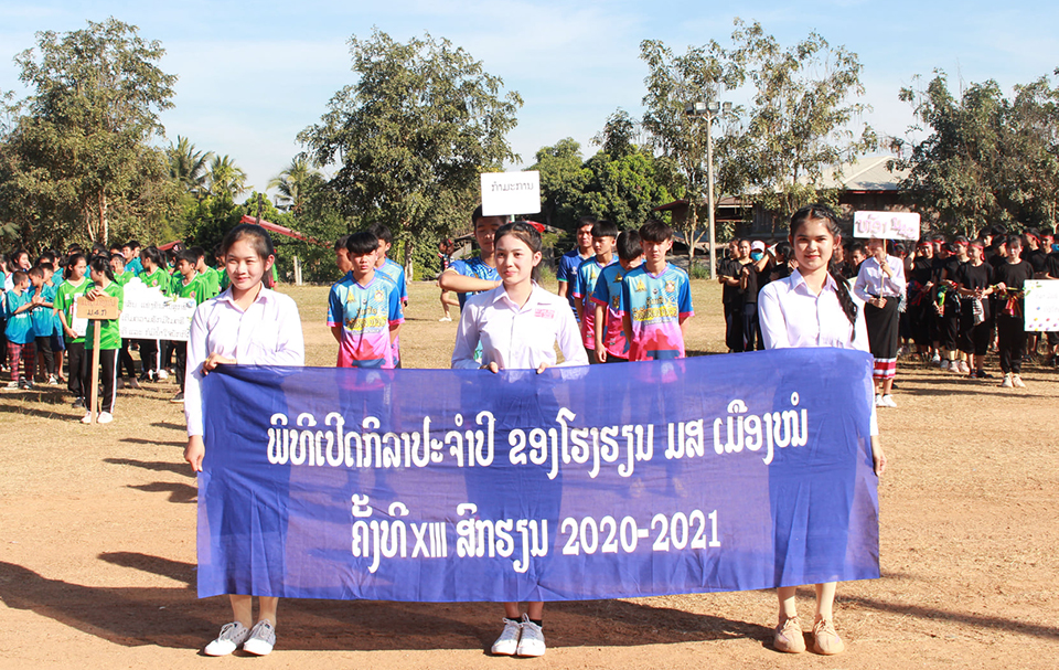 ເມື່ອບໍ່ດົນມານີ້ໂຮງຮຽນມັດທະຍົມສົມບູນເມືອງໝໍເມືອງແກ່ນທ້າວ ແຂວງໄຊຍະບູລີ ໄດ້ຈັດພິທີເປີດການແຂ່ງຂັນກີລາປະຈໍາສົກຮຽນ 2020-2021 ຂຶ້ນຢ່າງເປັນທາງການທີ່ເດີ່ນກີລາໂຮງຮຽນດັ່ງກ່າວ,