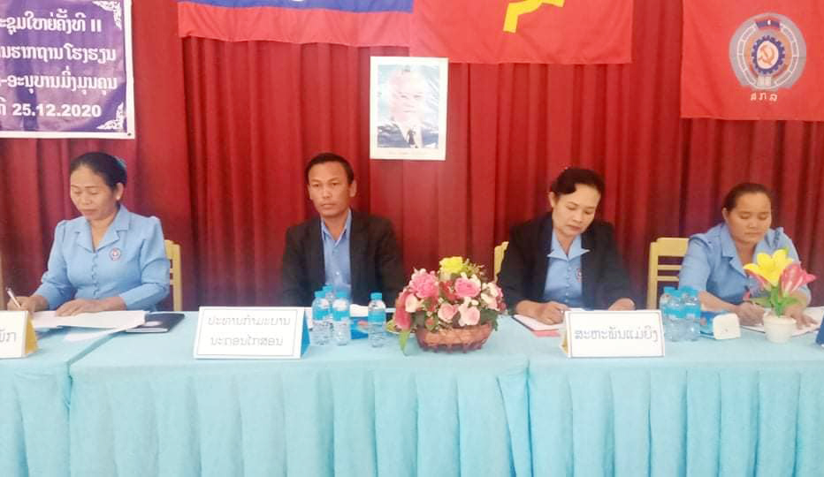 ກຳມະບານຮາກຖານໂຮງຮຽນລ້ຽງເດັກ-ອະນຸບານມິ່ງມຸງຄຸນໄດ້ສຳເລັດກອງປະຊຸມໃຫຍ່ ຄັ້ງທີ lI ໃນວັນທີ 25 ທັນວາ ຜ່ານມາທີ່ສະໂມສະສອນໂຮງຮຽນລ້ຽງເດັກ-ອະນຸບານມິ່ງມຸງຄຸນນະຄອນໄກສອນ ພົມວິຫານ ໂດຍການເຂົ້າຮ່ວມເປັນປະທານຂອງທ່ານ ຄອນສະຫັວນ ພູທິສອນ