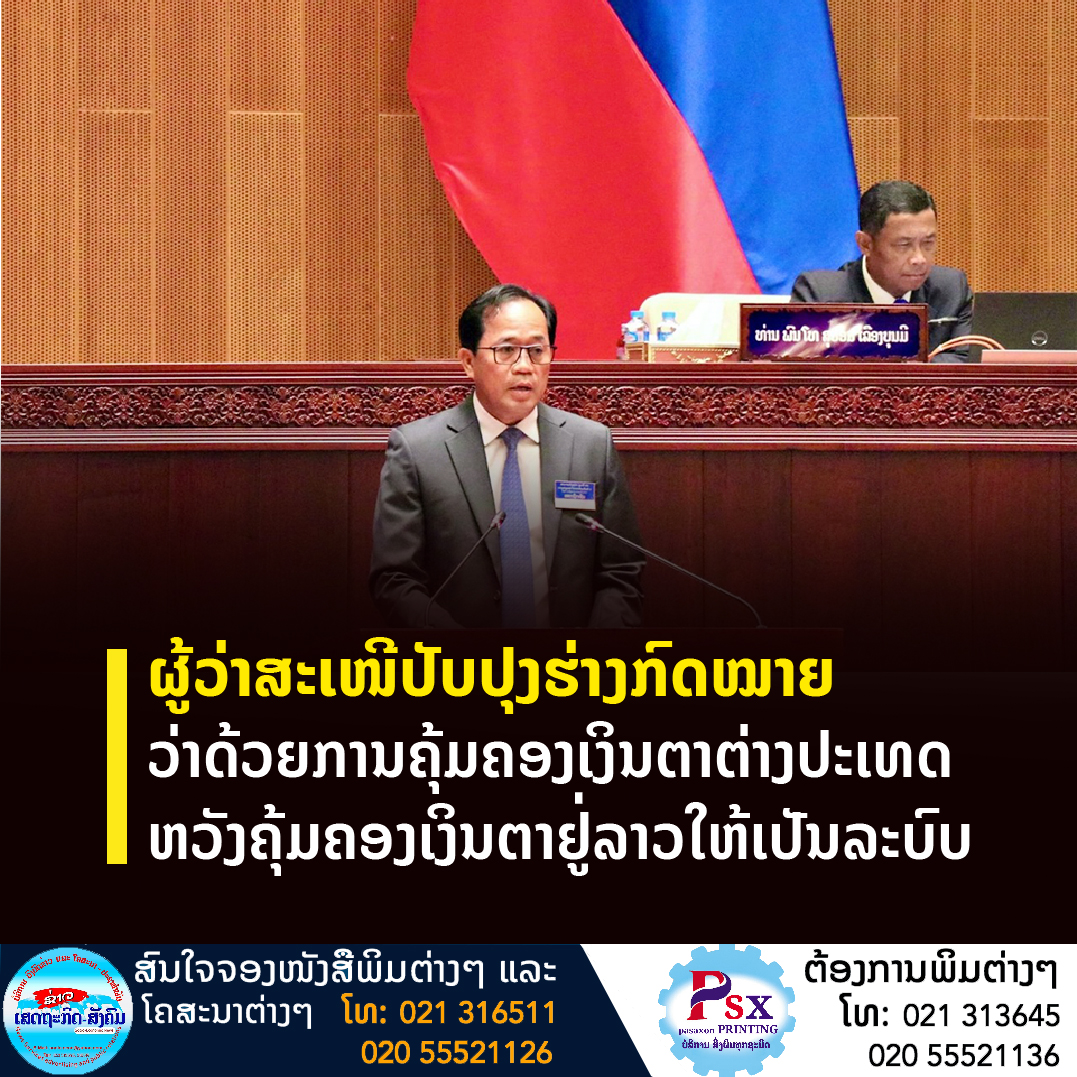 ການປັບປຸງຮ່າງກົດໝາຍວ່າດ້ວຍການຄຸ້ມຄອງເງິນຕາຕ່າງປະເທດເພື່ອເປັນເຄື່ອງມືໃນການຄຸ້ມຄອງເງິນຕາຕ່າງປະເທດຢູ່ລາວຢ່າງເປັນລະບົບ,
