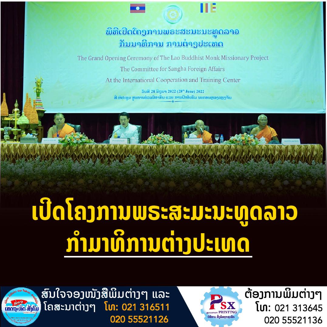 ໃນວັນທີ 28 ມີຖຸນາ 2022 ກໍາມາທິການຕ່າງປະເທດຈັດພິທີເປີດໂຄງການພຣະສະມະນະທູດລາວກໍາມາທິການຕ່າງປະເທດທີ່ຫໍປະຊຸມສູນການຮ່ວມມືສາກົນ ແລະ ການຝຶກອົບຮົມ (ICTC) ໂດຍໃຫ້ກຽດເຂົ້າຮ່ວມຂອງພະອາຈານໃຫຍ່ ມະຫາບຸນມາ ສິມມາພົມ ປະທານສູນກາງອົງການພຸດທະສາສະໜາສຳພັນແຫ່ງ ສປປ ລາວ