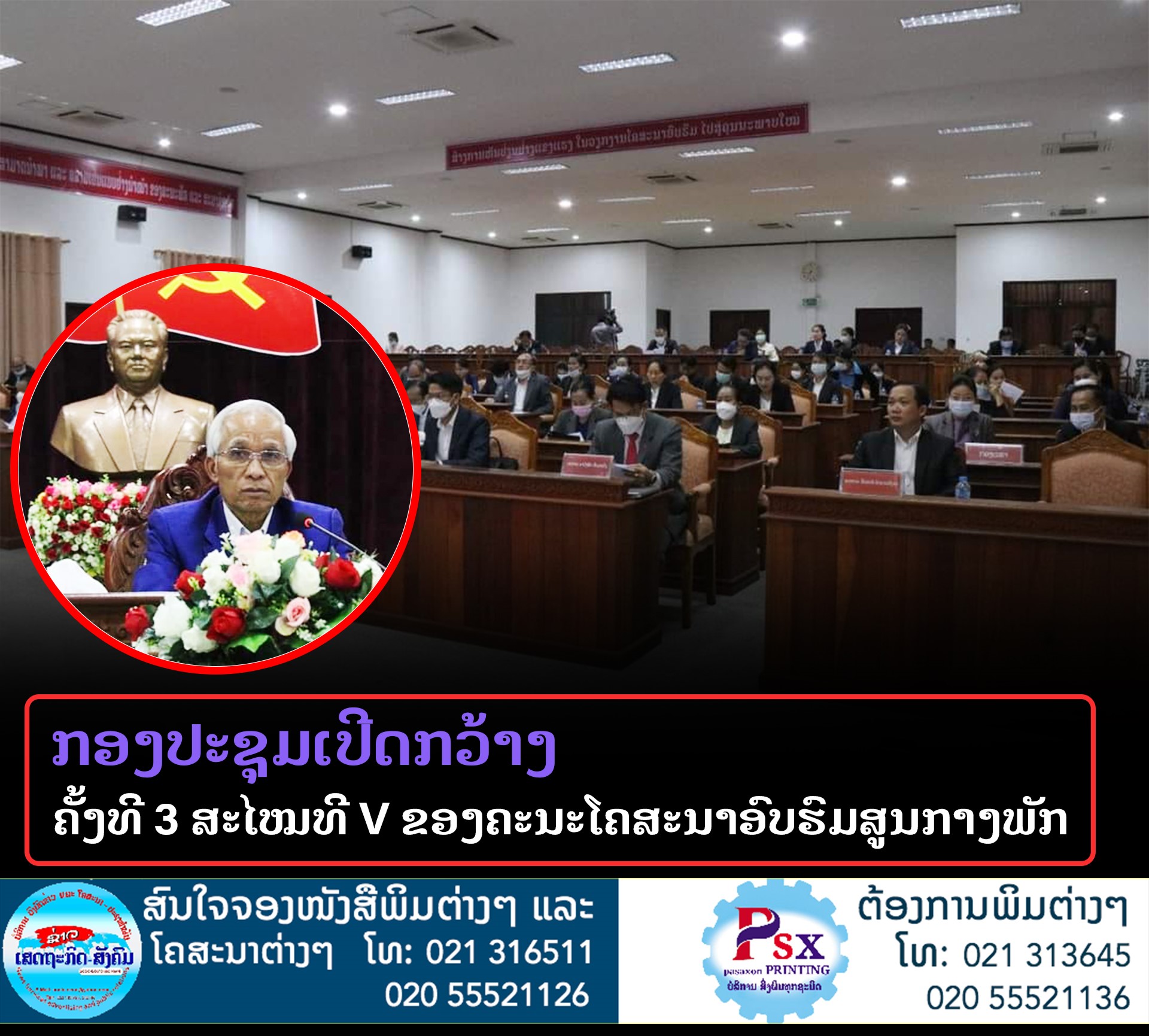 ຄະນະພັກຄະນະໂຄສະນາອົບຮົມສູນກາງພັກ (ຄອສພ) ໄດ້ຈັດກອງປະຊຸມເປີດກວ້າງຄົບຄະນະບໍລິຫານງານພັກ ຄັ້ງທີ 3 ສະໄໝທີ V ຈັດຂຶ້ນໃນວັນທີ 28 ມິຖຸນາ 2022