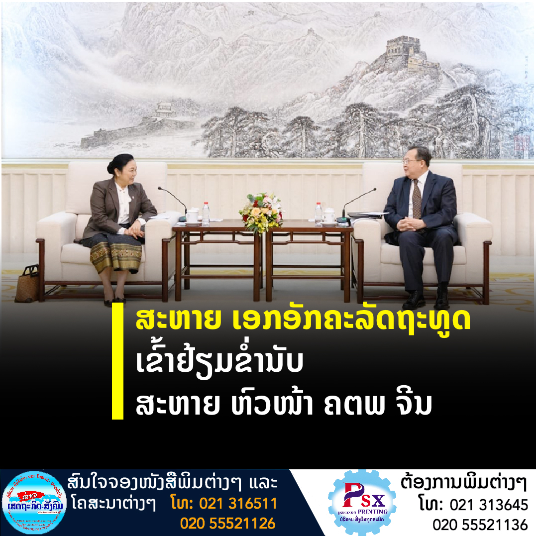 ໃນວັນທີ 24 ມິຖຸນາ ທີ່ຜ່ານມາ ທີ່ຄະນະພົວພັນຕ່າງປະເທດສູນກາງພັກກອມມູນິດຈີນ ທີ່ປັກກິ່ງ, ສປ ຈີນ, ສະຫາຍ ນາງ ຄຳເພົາ ເອີນທະວັນ, ເອກອັກຄະລັດຖະທູດ ແຫ່ງ ສປປ ລາວ ປະຈຳ ສປ ຈີນ ໄດ້ເຂົ້າຢ້ຽມຂໍ່ານັບ ແລະອວຍພອນ ສະຫາຍ ລິວຈຽນຊາວ,
