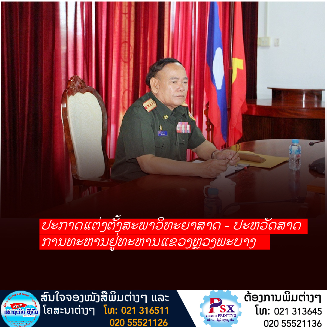 ພິທີປະກາດແຕ່ງຕັ້ງສະພາວິທະຍາສາດ - ປະຫວັດສາດການທະຫານ ຂອງກອງບັນຊາການທະຫານແຂວງຫຼວງພະບາງ ໄດ້ຈັດຂື້ນໃນວັນທີ 21 ມິຖຸນາ 2022 ໂດຍການເປັນປະທານຂອງ ສະຫາຍ ພັນເອກ ວິຊຽນ ສີສະອາດ ຮອງຫົວໜ້າກົມວິທະຍາສາດ - ປະຫວັດສາດການທະຫານກະຊວງປ້ອງກັນປະເທດ,